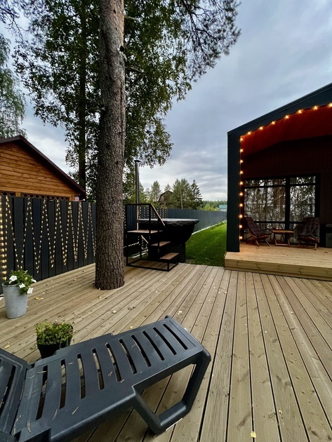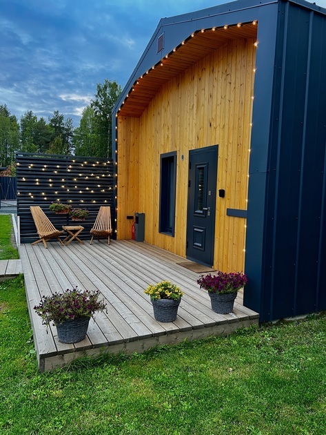 Мы позаботились, чтобы у Вас было всё для комфортного проживания: каждый дом имеет свою террасу с потрясающим видом на лес и озеро, где можно наслаждаться закатами и рассветами. Внутри Вас ждут все удобства: гостиная с панорамными окнами с видом на лес и озеро, современная кухня, удобная мебель, отдельная спальная комната с двуспальной кроватью, санузел.