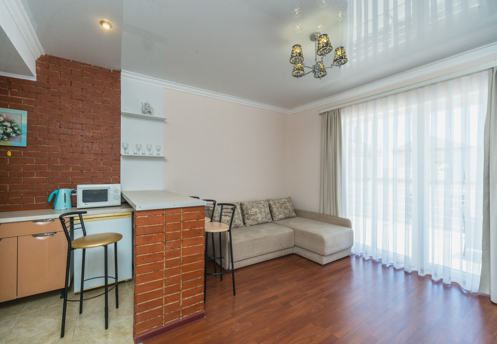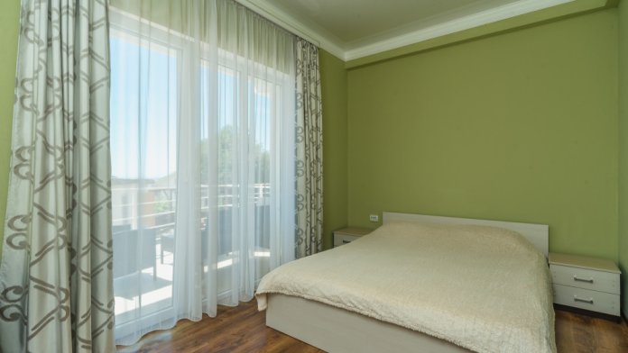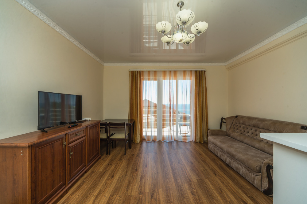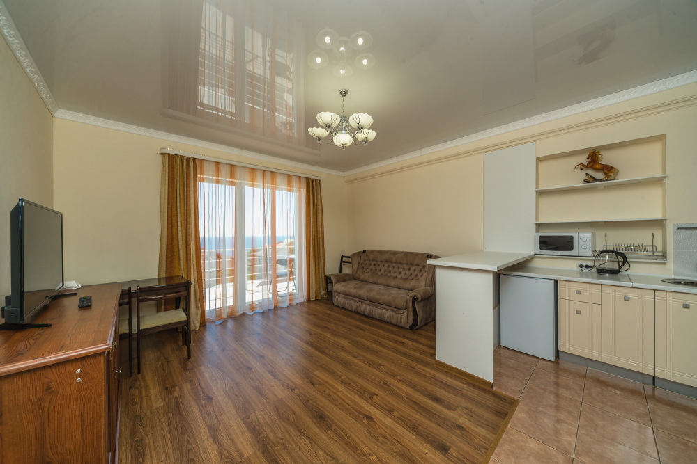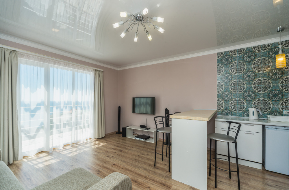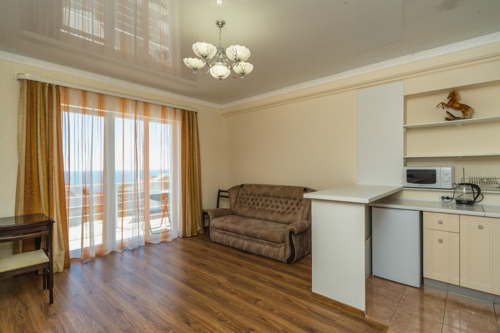 Остались очень довольны за бронированным жильём. Всё соответствовало указанному описанию на сайте. Чисто, комфортно, кондиционер, горячая вода, интернет, никаких замечаний. Всё что нужно - в номере было. Из окна прекрасный вид на море. Отдыхаешь душой и телом на всё 100%. Мы приехали поздно ночью на день раньше, нас дождались, встретили, поселили. Хозяйка Зарема очень приятная, гостеприимная девушка. Продлили на два дня ещё свой досуг. Комфортно и важно что стоянка на закрытом дворе, за машину спокойны. Т. к. многие оставляли машины около дорог, улицы узкие и много резких поворотов, возможно остаться без транспорта. К магазинам, кафе и остановке примерно минут 7. К пляжу минут 10-15. Вначале тяжело было ходить, подъём-спуск, а затем привыкли. Рядом Мисхорский спуск, с другой стороны корпуса гора Ай Петри, не далеко Воронцовский дворец и парк. Уезжали рано утром, нас хозяйка провела. Покидать совсем не хотелось. Рекомендуем данные апартаменты!!!
