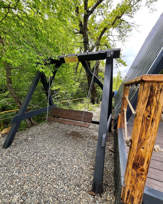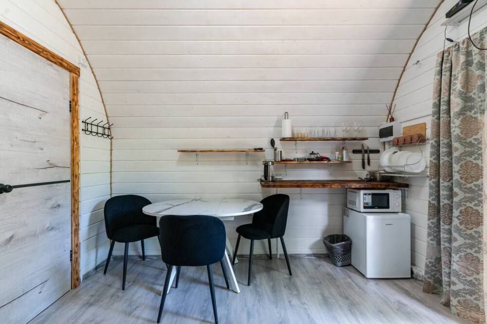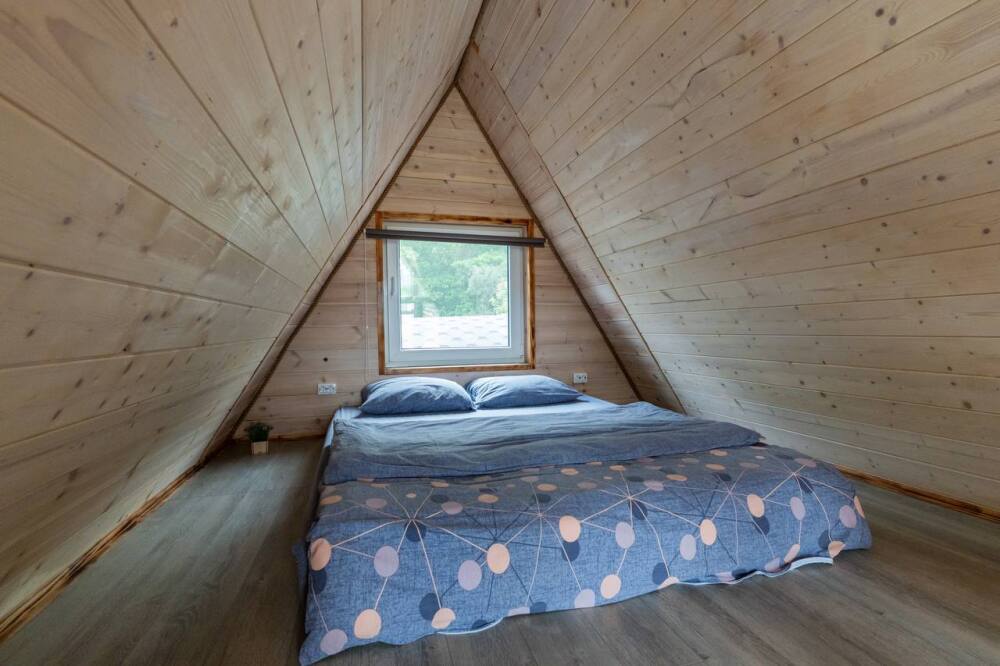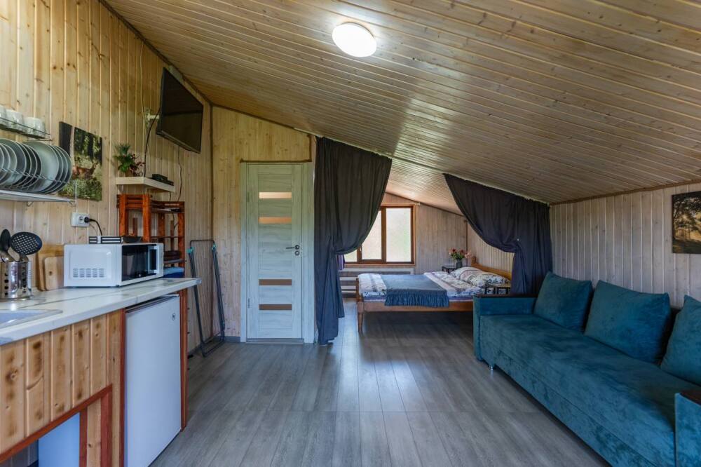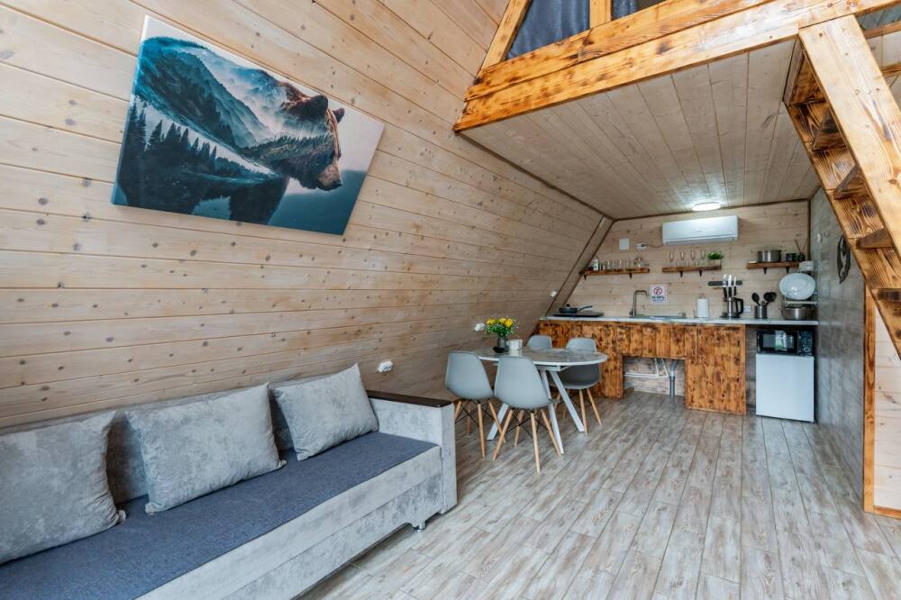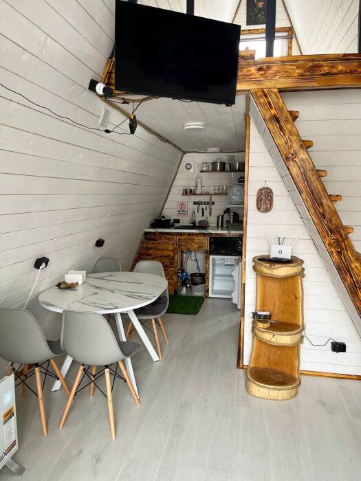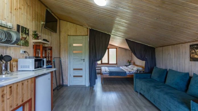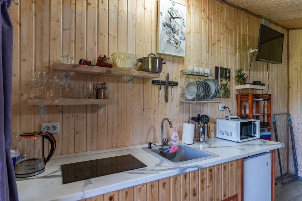 Для размещения гостям предлагают дома А-фрейм, арочный дом и номера с балконом вместимостью от 2 до 5 гостей. Все дома и номера оснащены: Wi-Fi, кухней, санузлом, кондиционером, холодильником, электрической плитой, микроволновкой, стиральной машиной, водонагревателем, телевизором, феном, посудой, кроватью, диваном, обеденной зоной (стол, стулья).