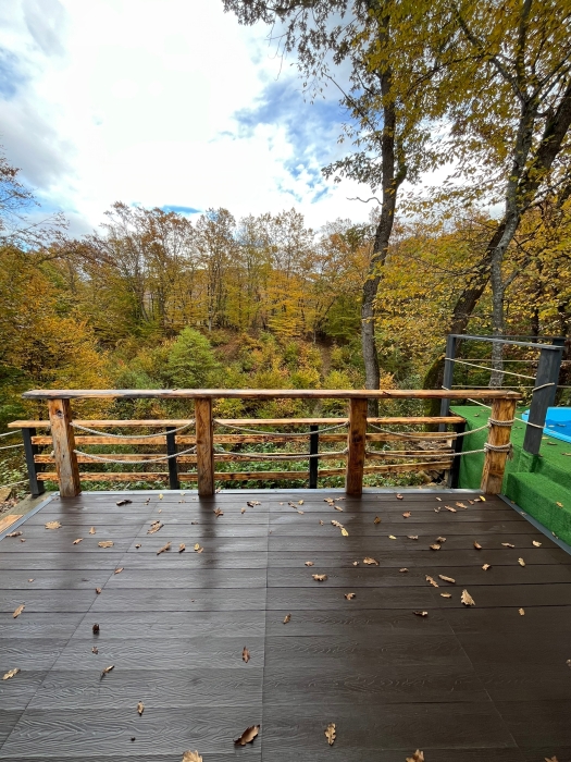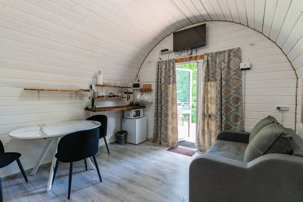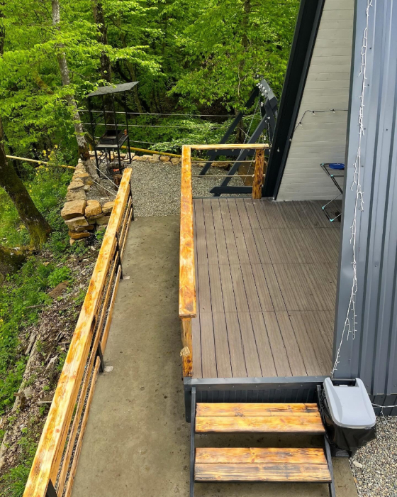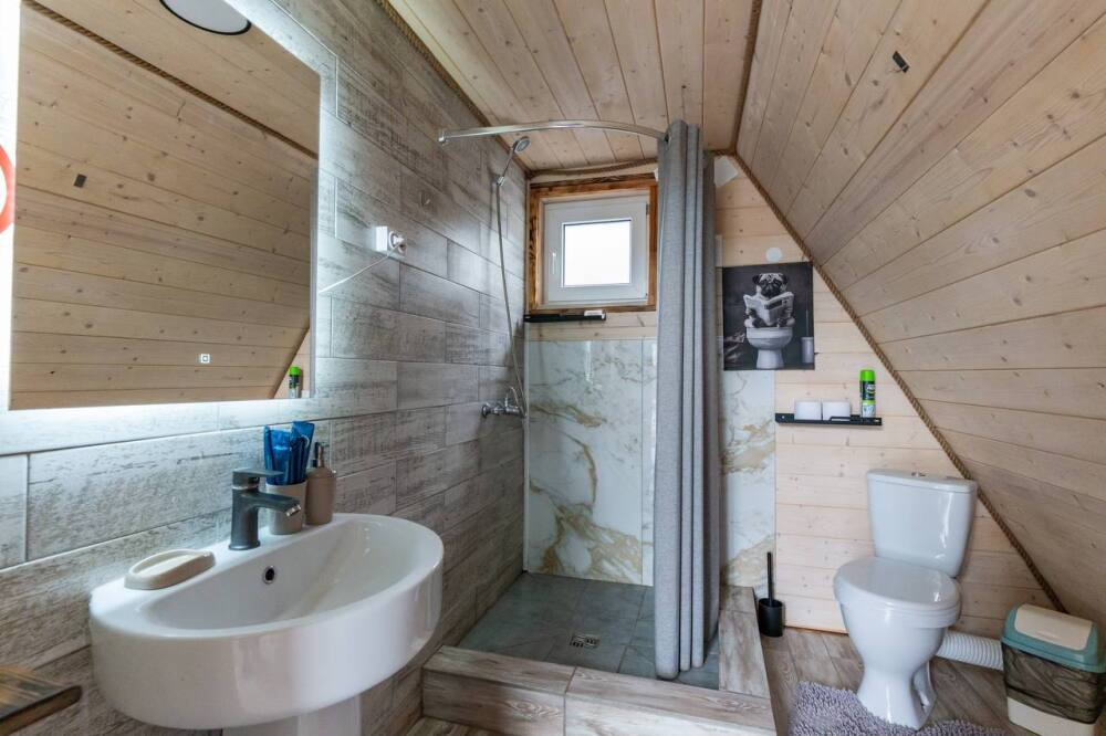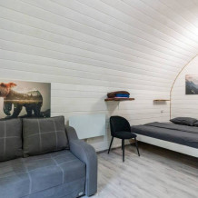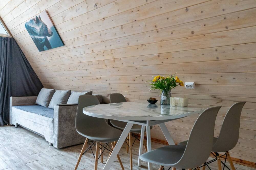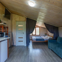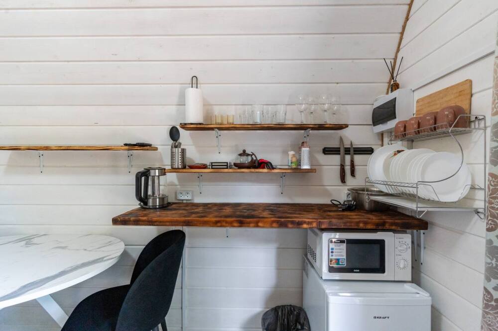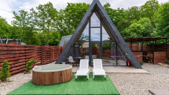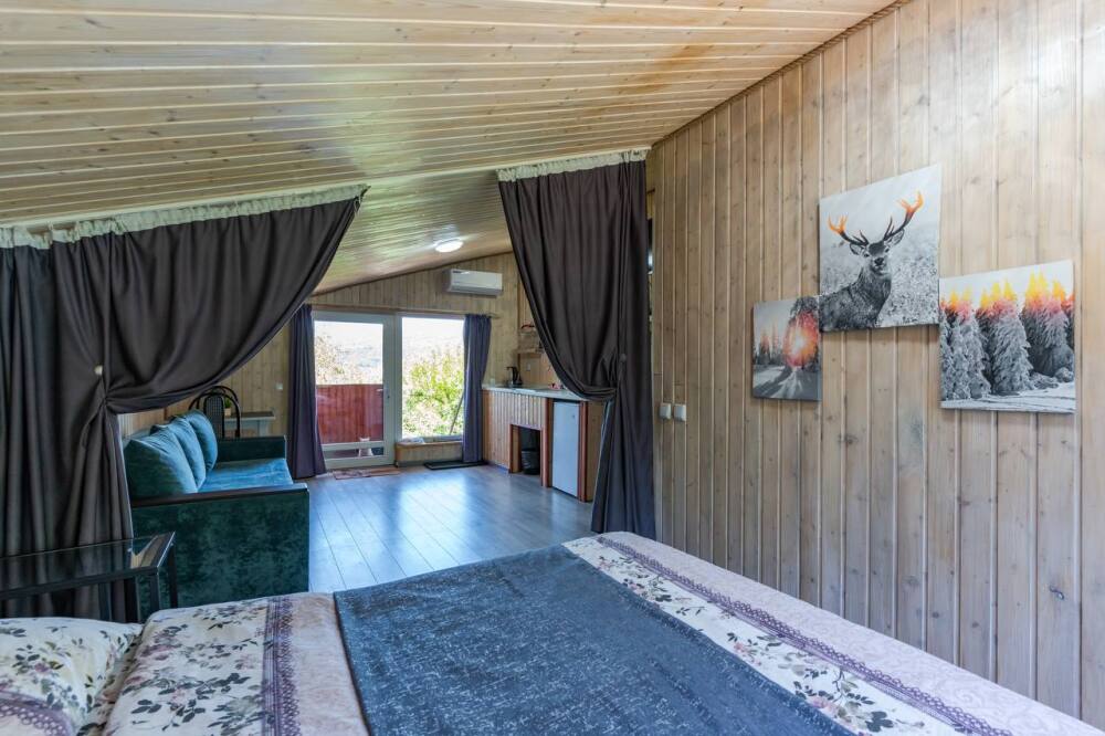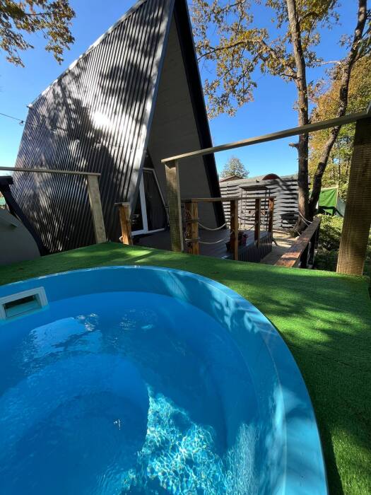 Для размещения гостям предлагают дома А-фрейм, арочный дом и номера с балконом вместимостью от 2 до 5 гостей. Все дома и номера оснащены: Wi-Fi, кухней, санузлом, кондиционером, холодильником, электрической плитой, микроволновкой, стиральной машиной, водонагревателем, телевизором, феном, посудой, кроватью, диваном, обеденной зоной (стол, стулья).