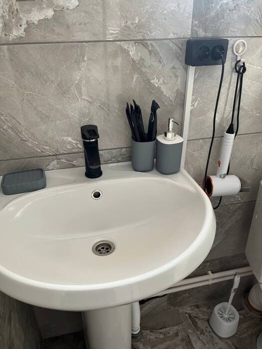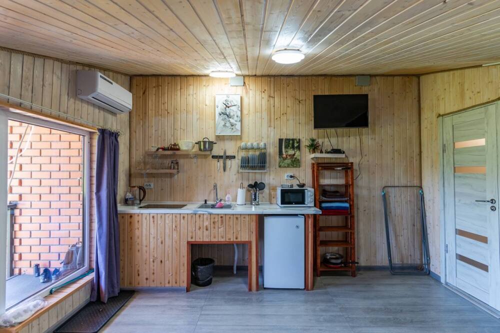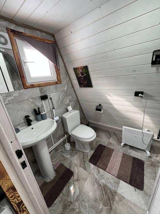 Удобства в доме: Wi-Fi; Кухня; Санузел; Кондиционер; Холодильник; Эл. плита; Микроволновка; Стиральная машина; Водонагреватель; Телевизор; Фен; Посуда; Кровать + диван; Обеденная зона (стол, стулья).