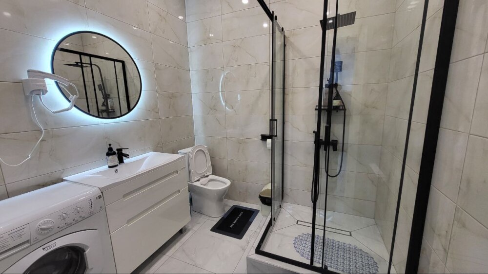 Для Вашего удобства есть всё необходимое: стиральная машина для стирки белья, микроволновая печь для приготовления еды, утюг для глажки и телевизор для отдыха перед сном.