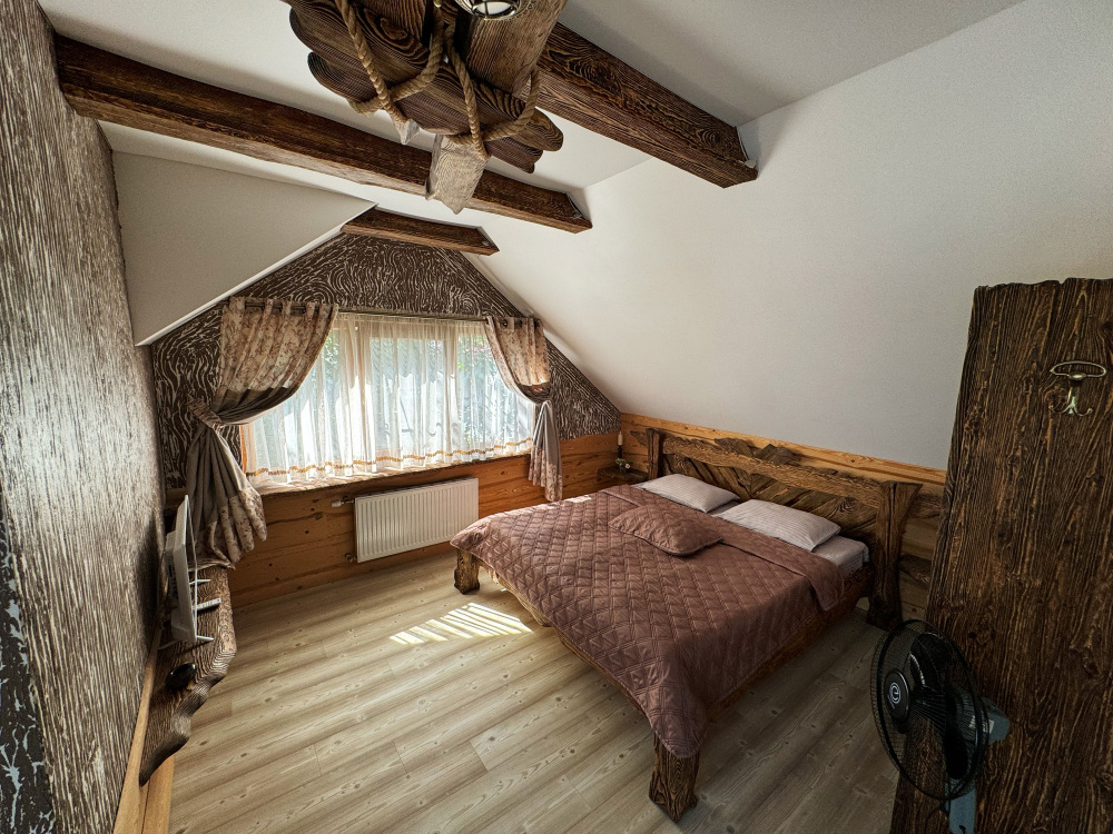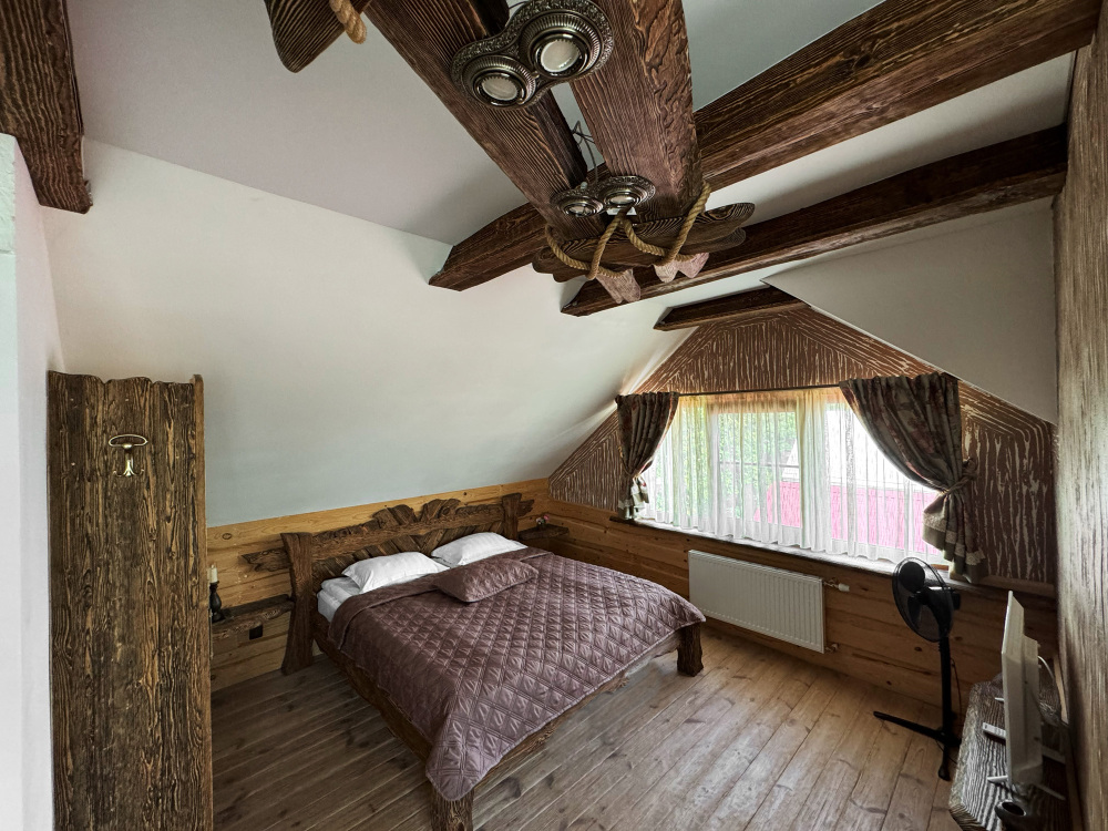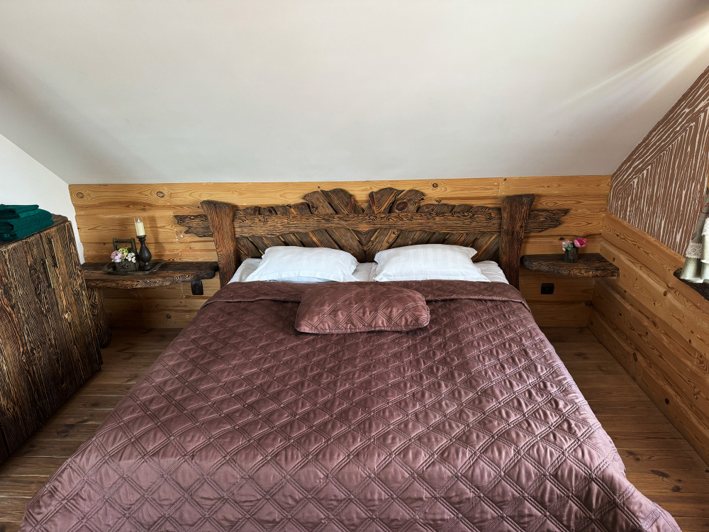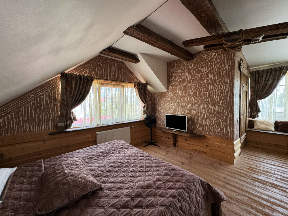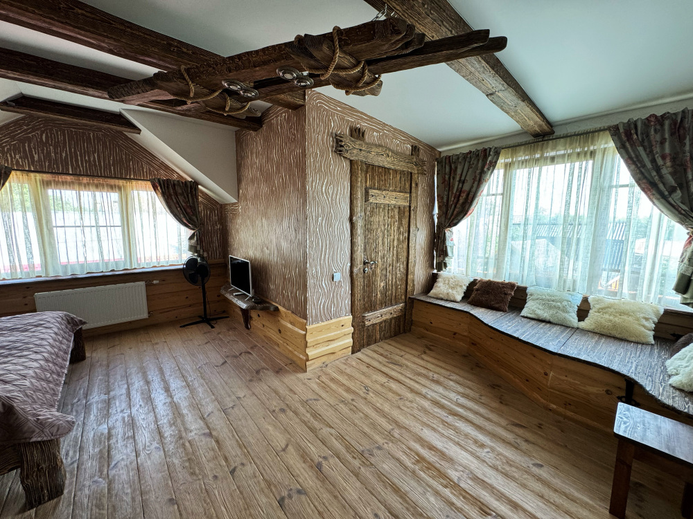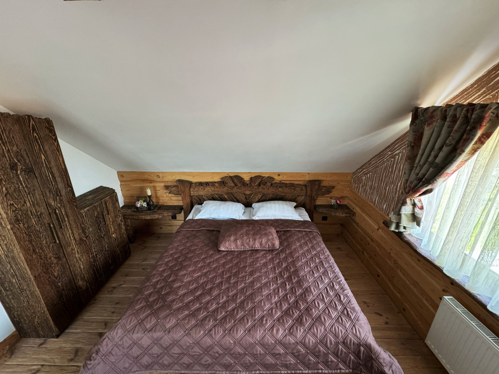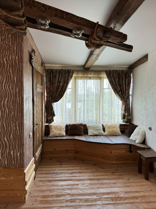Дом может разместить до 4 гостей и не оставит равнодушными гостей своей атмосферой комфорта, уединения и уютного тепла исходящего от дерева.