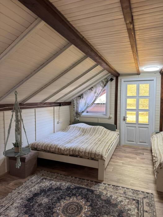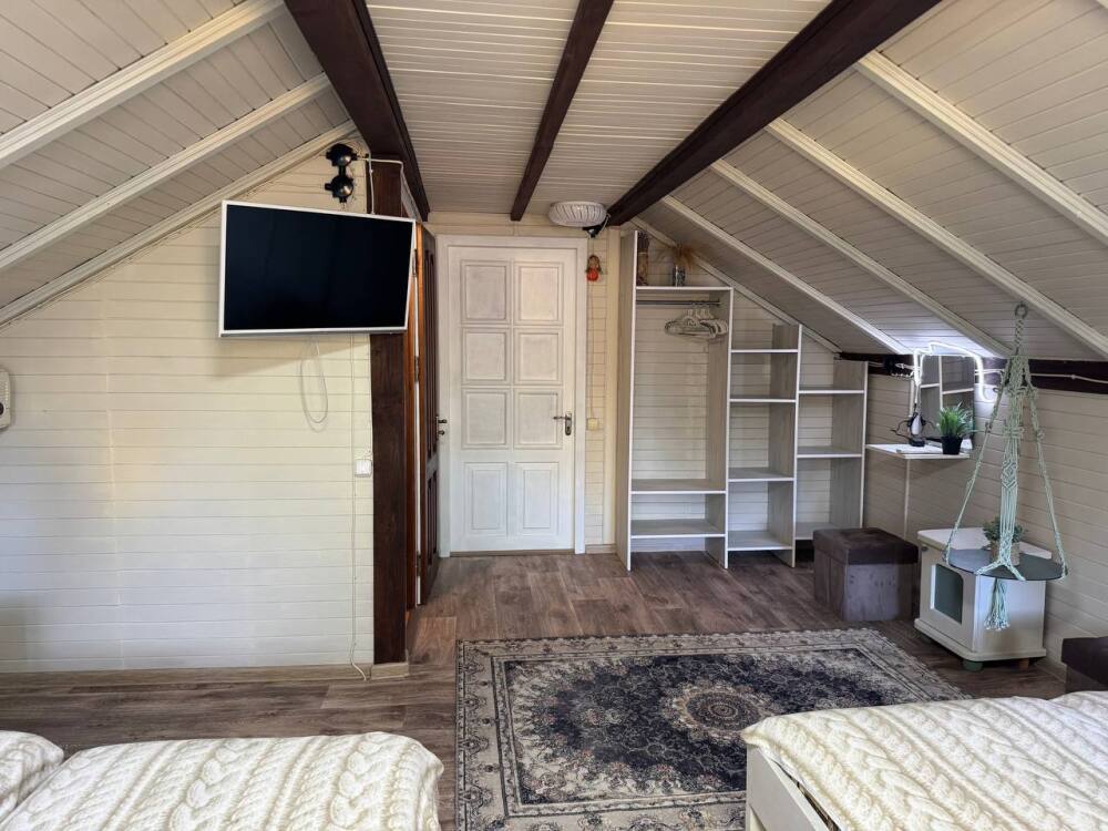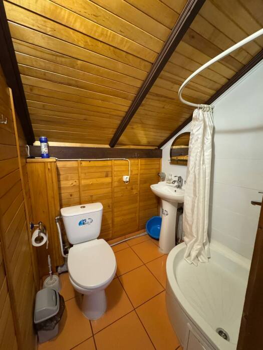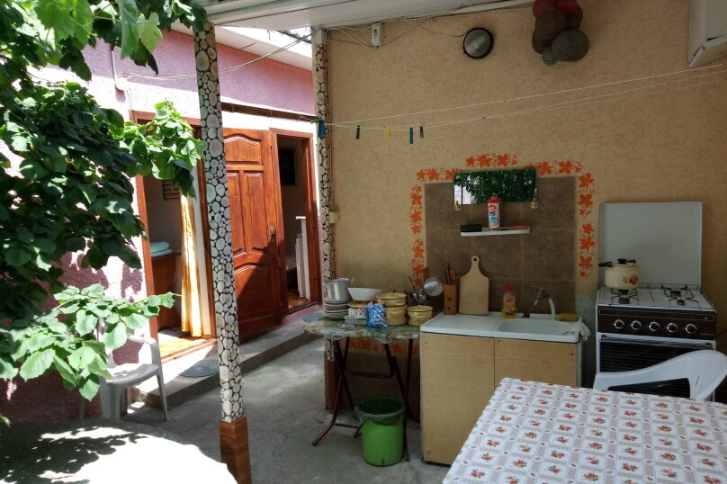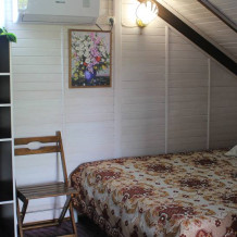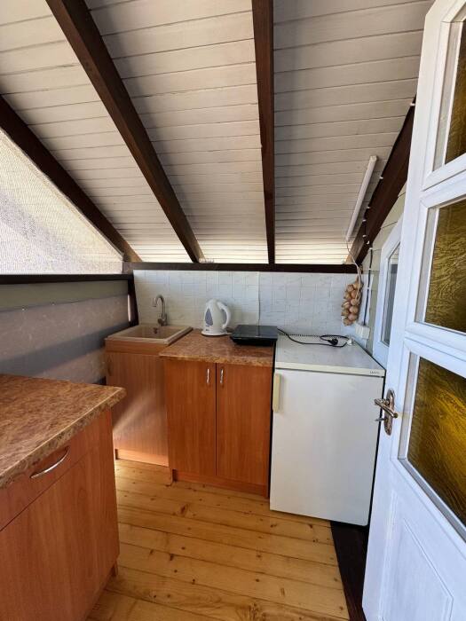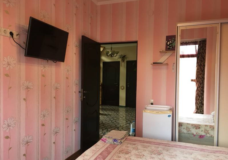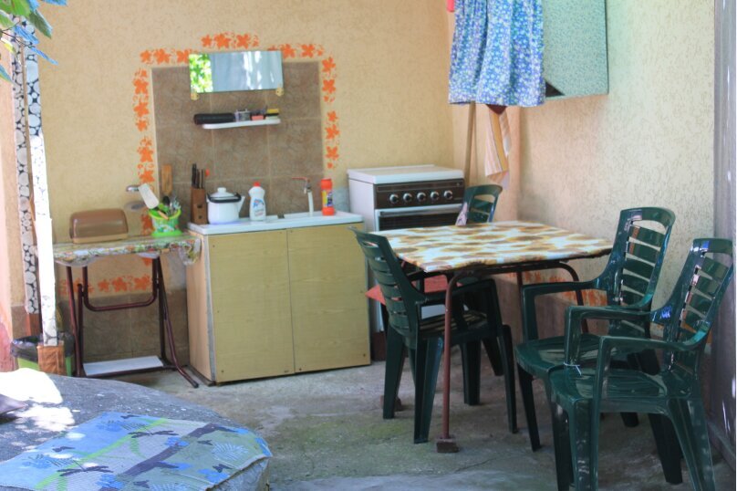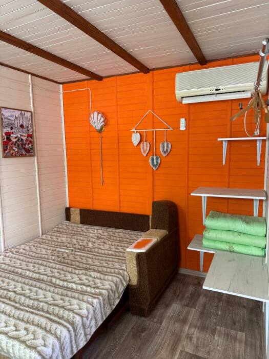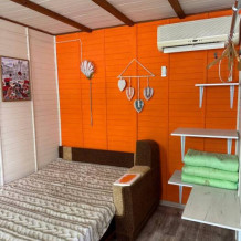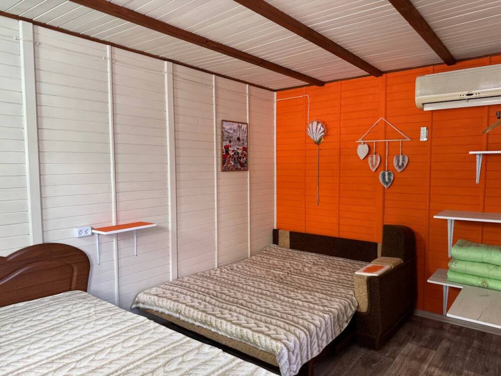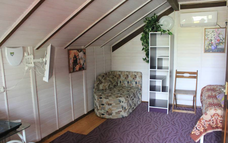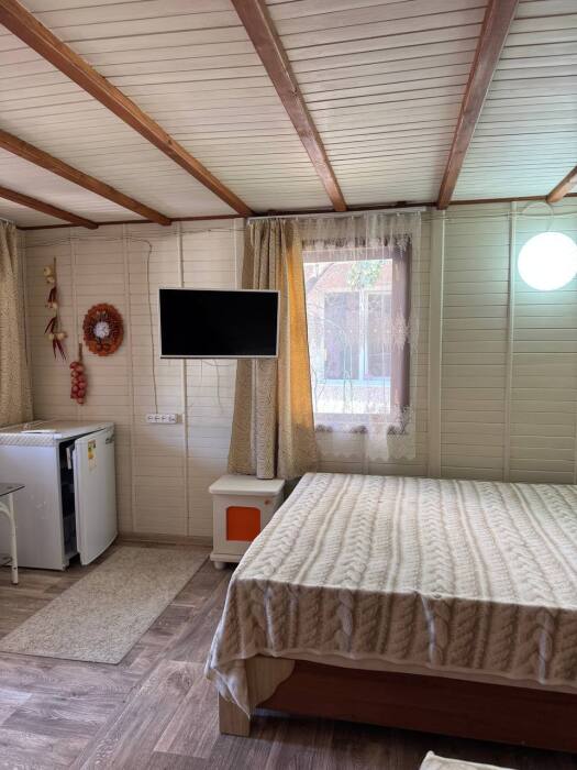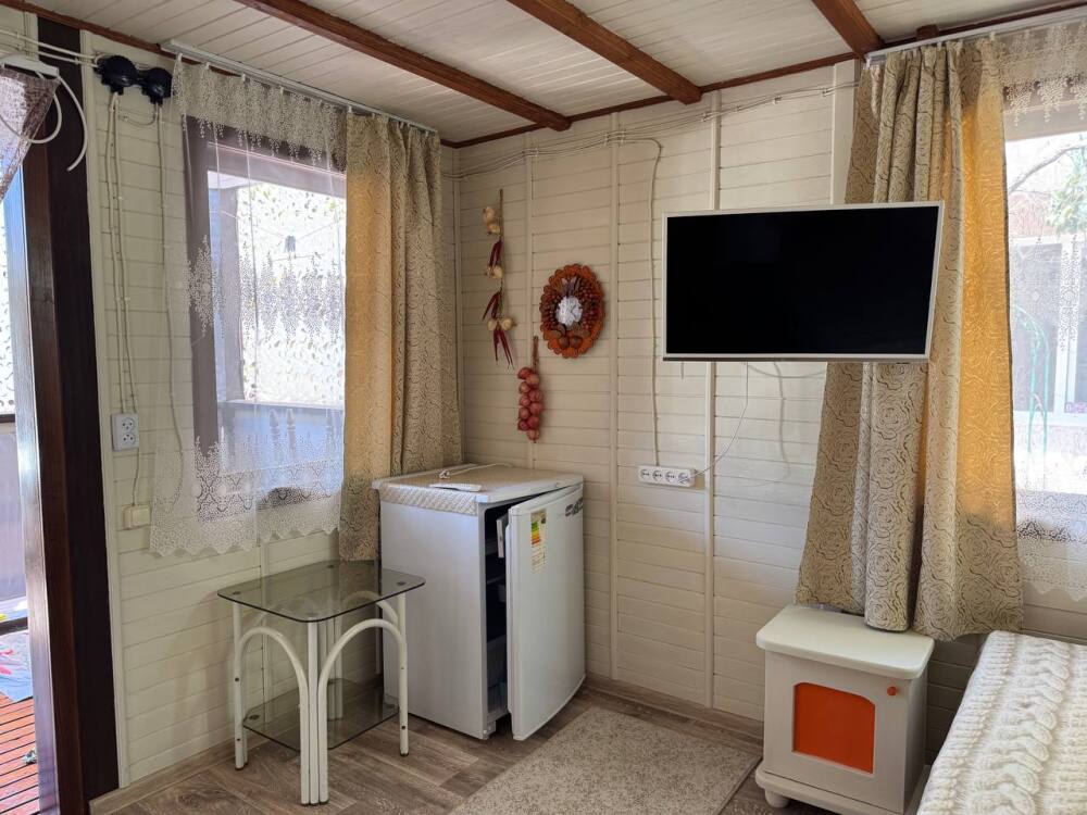 Летний домик из двух комнат на 4 человека. В каждой комнате холодильник, телевизор, вентилятор. Кухня летняя оборудована на свежем воздухе с обеденным столом, для приготовлении пищи стоит газовая четырехкомфорочная плита. Есть внешний собственный капитальный санузел и душевая, в шаговой доступности от комнат.