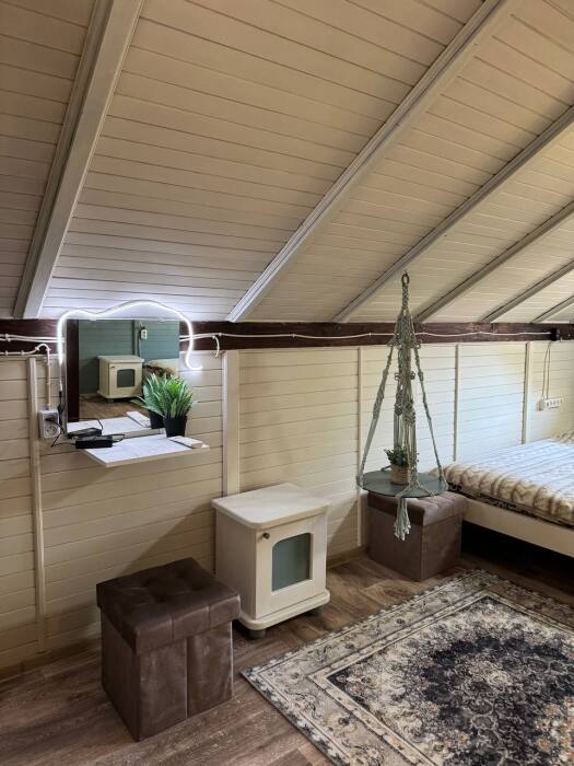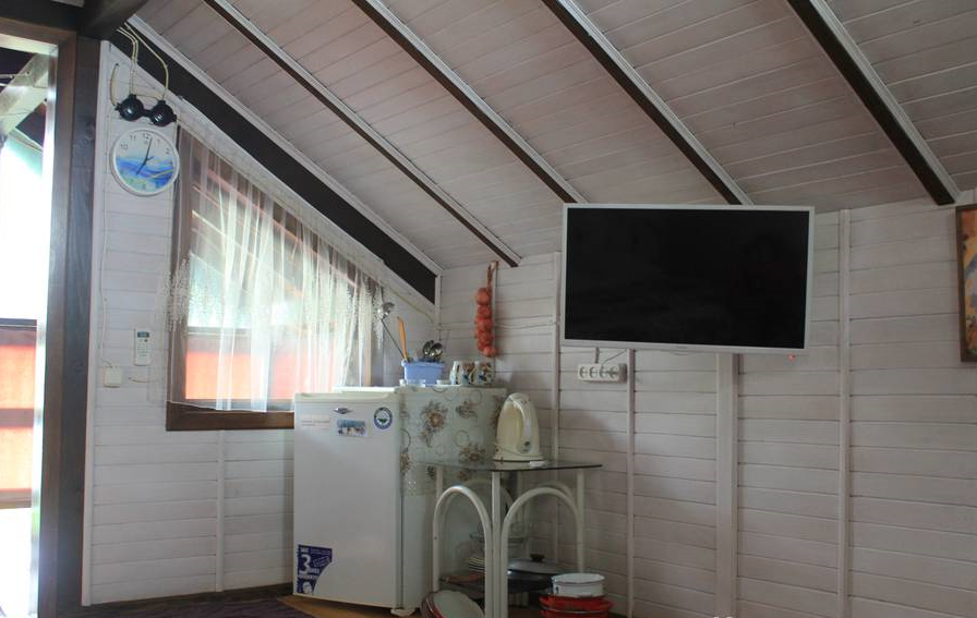 Все комнаты в деревянных коттеджах оснащены индивидуальным кондиционером, телевизором, холодильником, с отдельным входом и террасой, терраса оборудована мини-кухней с однокомфорочной индукционной плиткой, электрочайником и необходимой посудой.