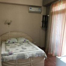 В капитальном гостевом доме (кирпичном, он находится на одной территории с коттеджами), сдаются комнаты только на втором этаже. С хорошим ремонтом, большим холлом оборудованным кухней на 3 комнаты. Индивидуально в комнатах - кондиционер, холодильник, телевизор с кабельным тв, большой балкон на котором стоит стол и сушилка для белья.