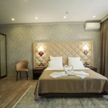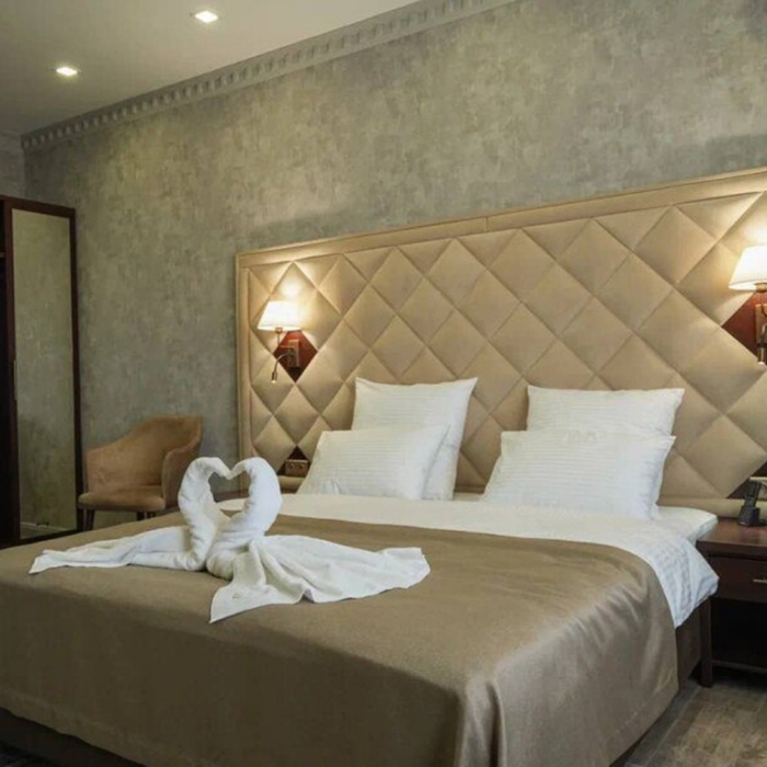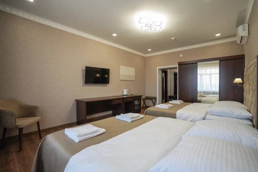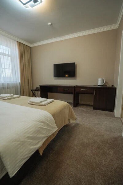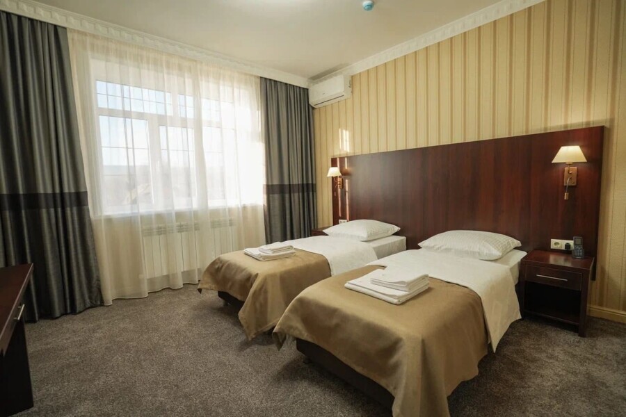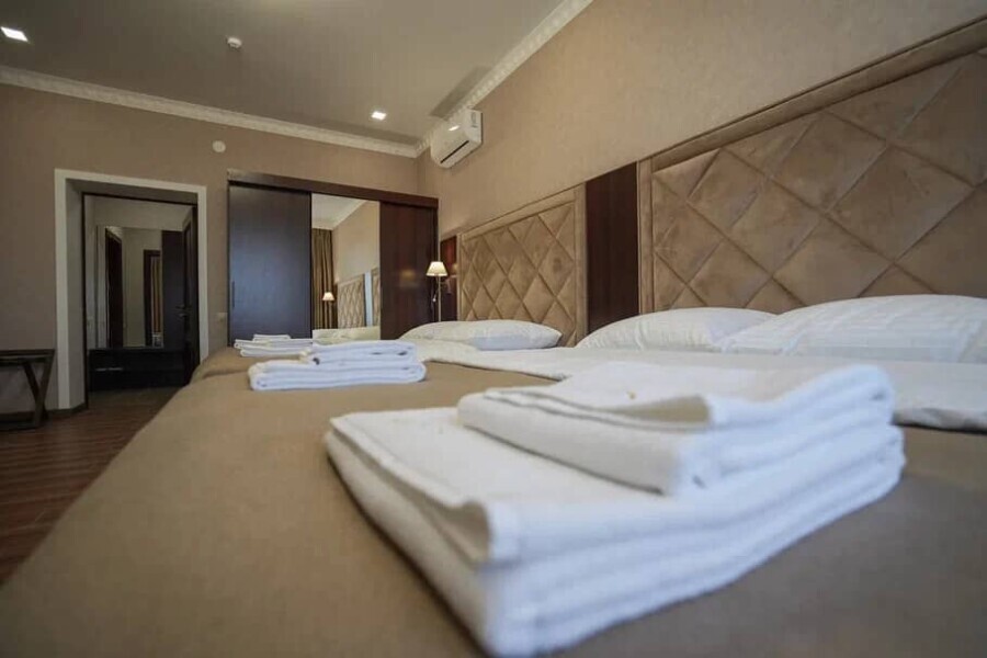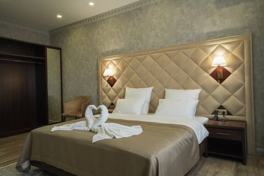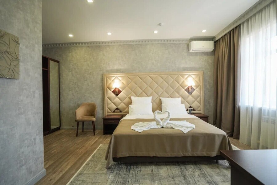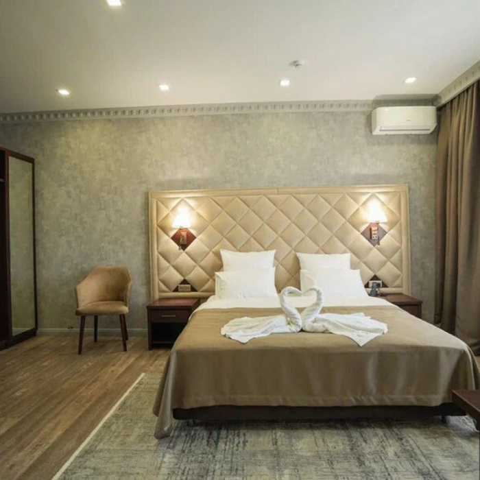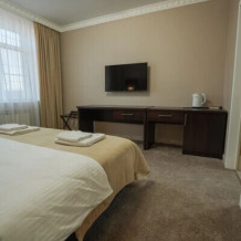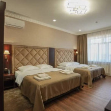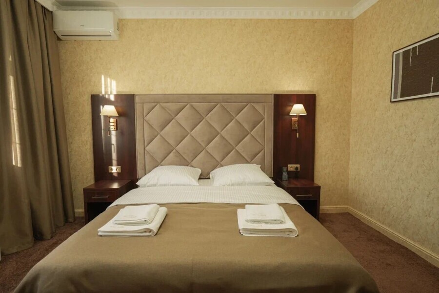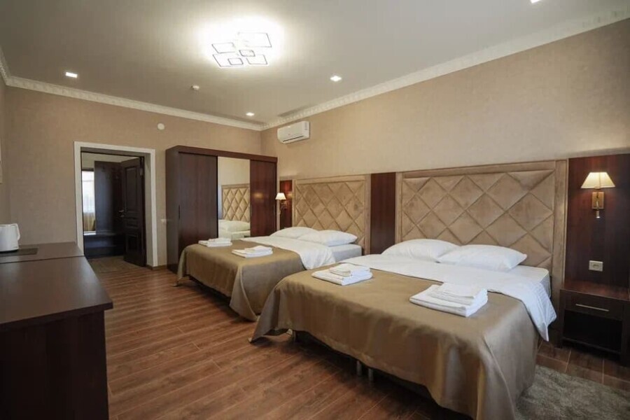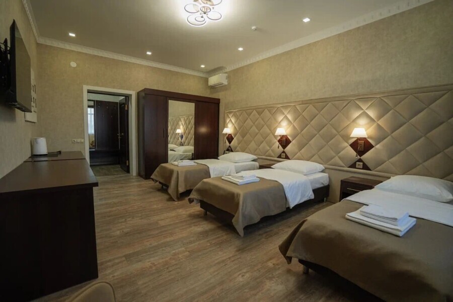 Для Вашего комфорта мы предлагаем широкое разнообразие номерного фонда, которое подойдет как для семейного отдыха, так и для деловых поездок. Так же к Вашим услугам мы предлагаем обслуживание номеров из ресторана. Ресторан расположен на первом этаже отеля, где Вы сможете провести уютный вечер, отметить знаменательное событие и насладиться изысканной кавказской и европейской кухней.