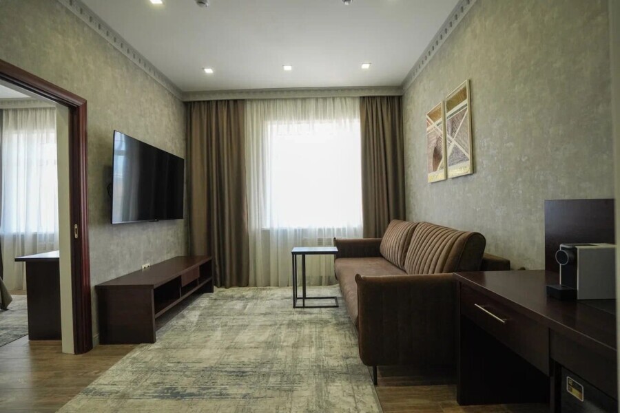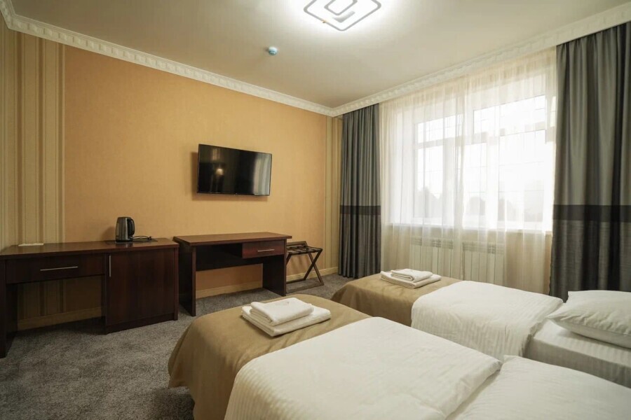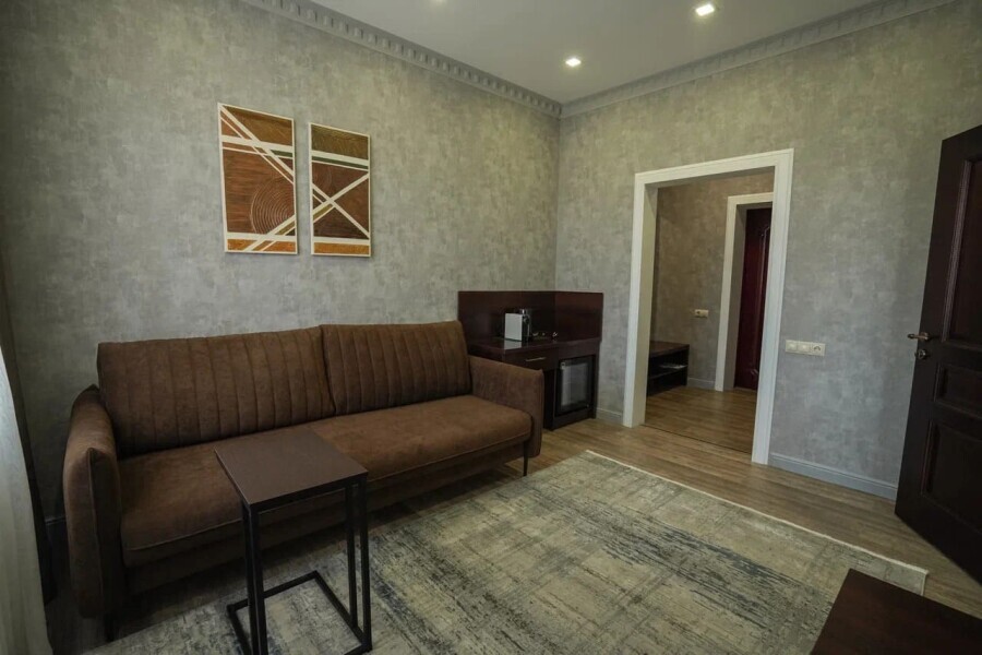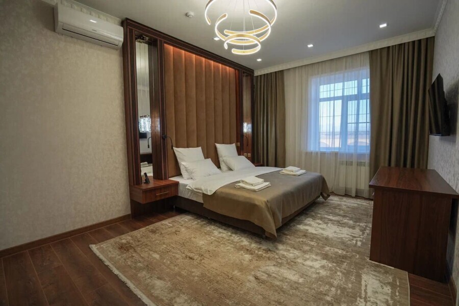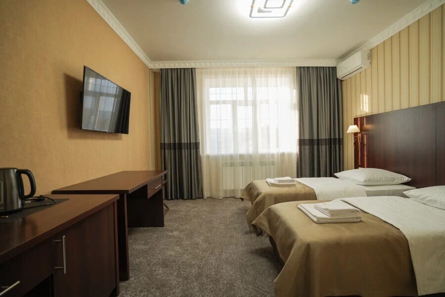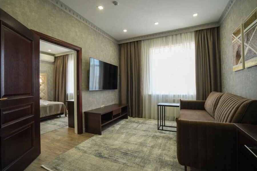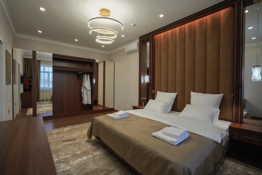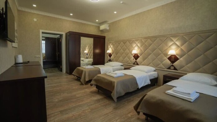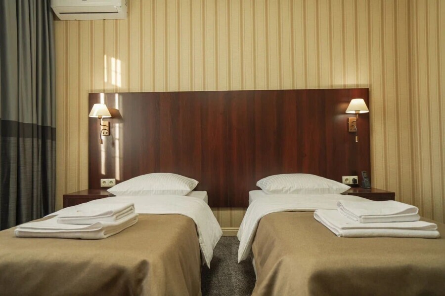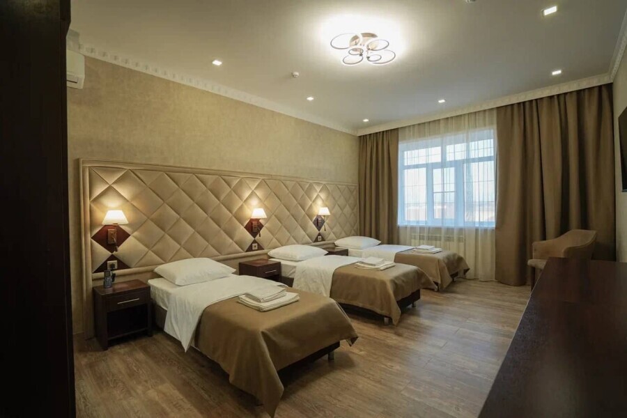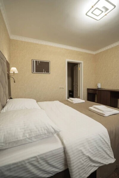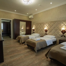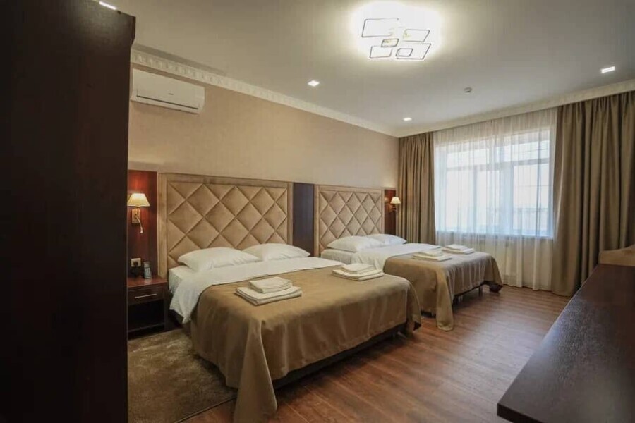 Для Вашего комфорта мы предлагаем широкое разнообразие номерного фонда, которое подойдет как для семейного отдыха, так и для деловых поездок. Так же к Вашим услугам мы предлагаем обслуживание номеров из ресторана. Ресторан расположен на первом этаже отеля, где Вы сможете провести уютный вечер, отметить знаменательное событие и насладиться изысканной кавказской и европейской кухней.