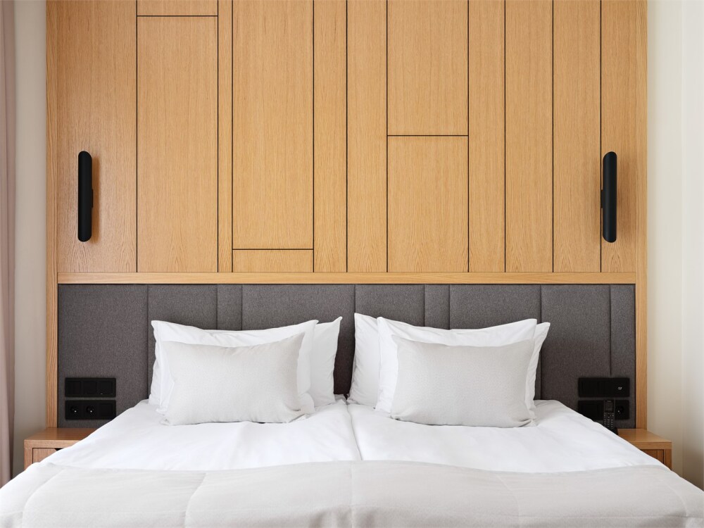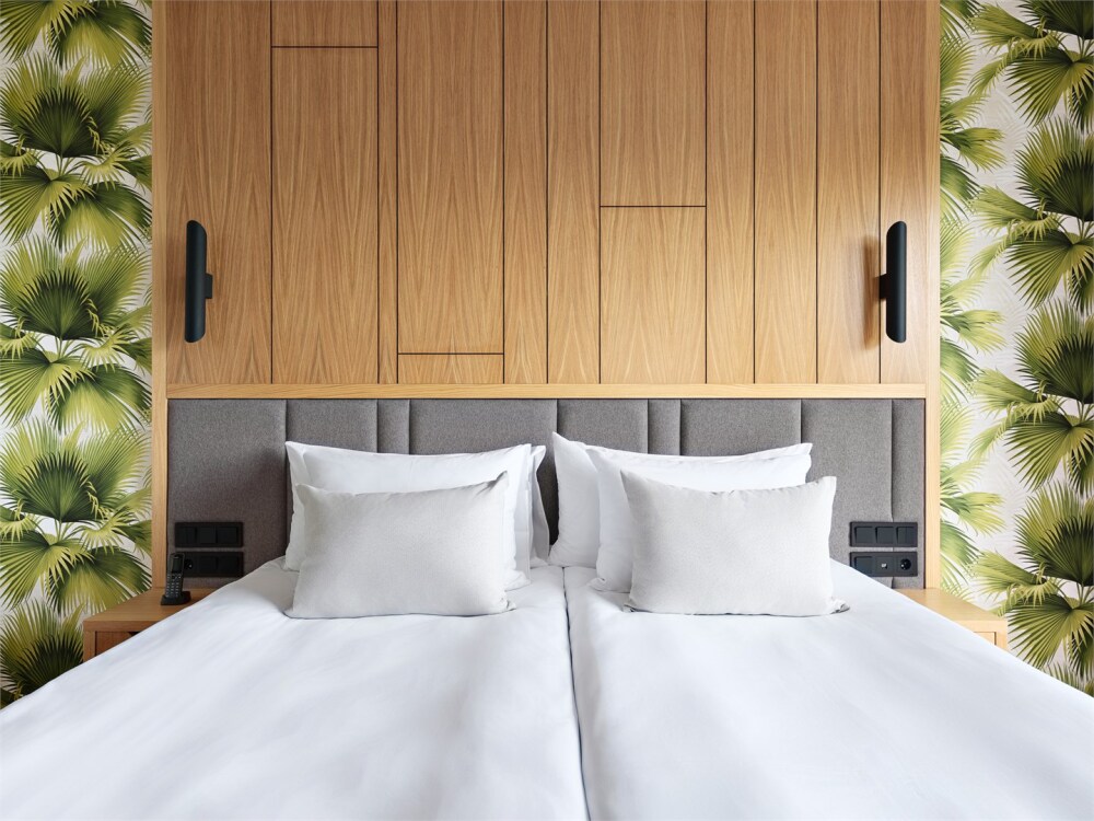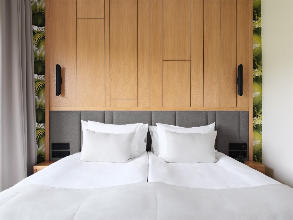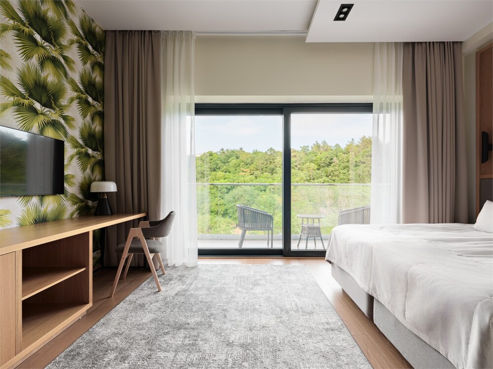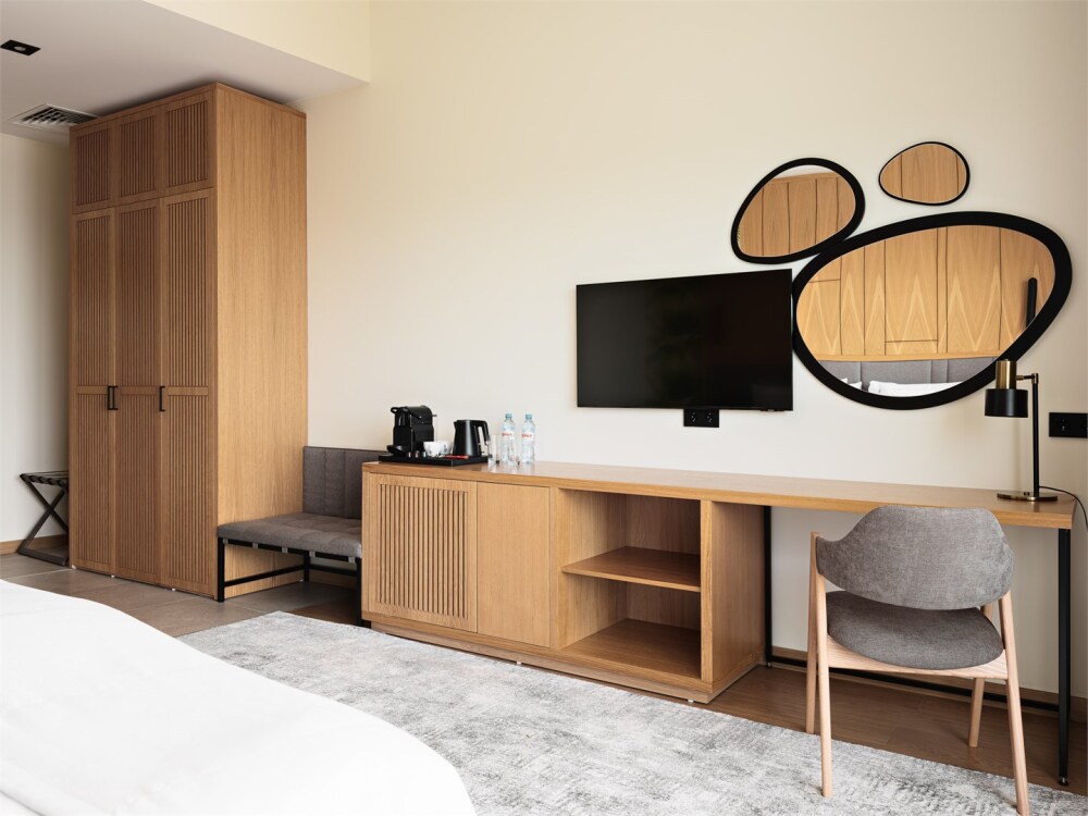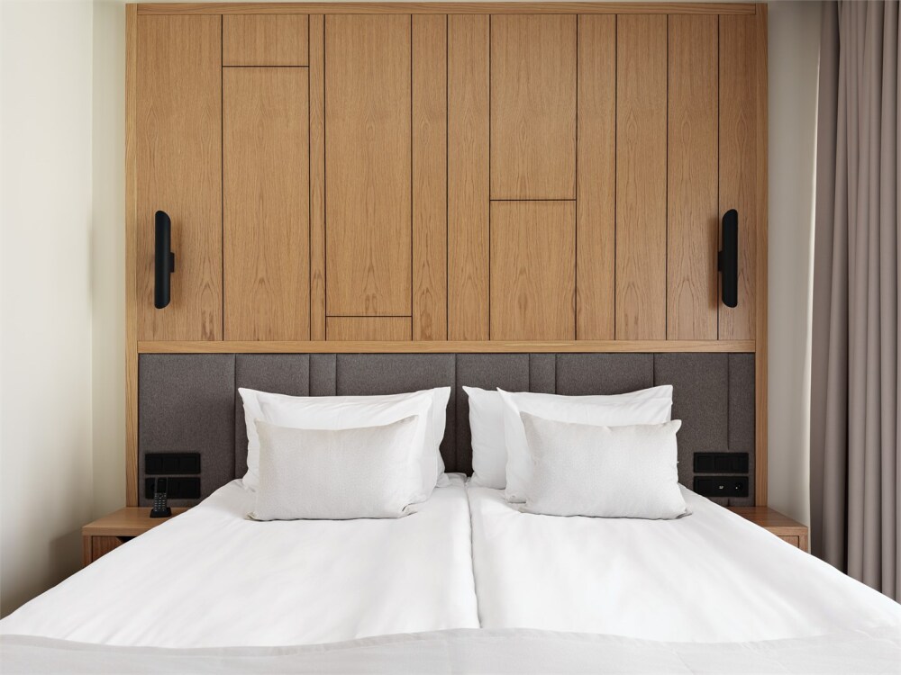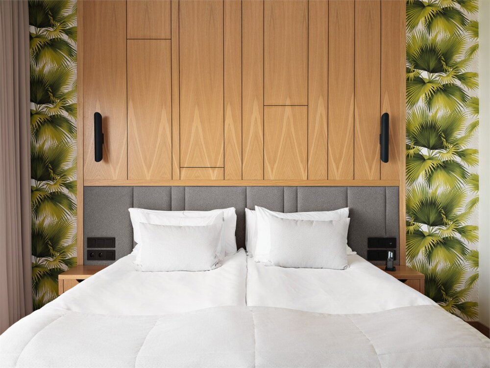 Классический стандартный 2-местный номер с большим панорамным окном и балконом. Номер предназначен для размещения 1 или 2 человек. Кровати трансформируется в одну 2-спальную или две 1-спальные кровати шириной 90 см. Дополнительные места не предусмотрены. Один ребёнок до 4 лет — можно без отдельного спального места.