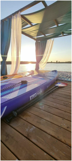 - Собственный пляж с выходом на пирс у реки Кирпили. 3 sup-борда, 10 минут до лотосов, живописная природа. По предварительной договорённости. В летнее время.