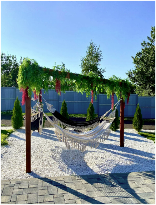 Насладитесь плаванием в подогреваемом бассейне, отдохните в лаундж-зоне, покачиваясь в гамаке или на качелях.