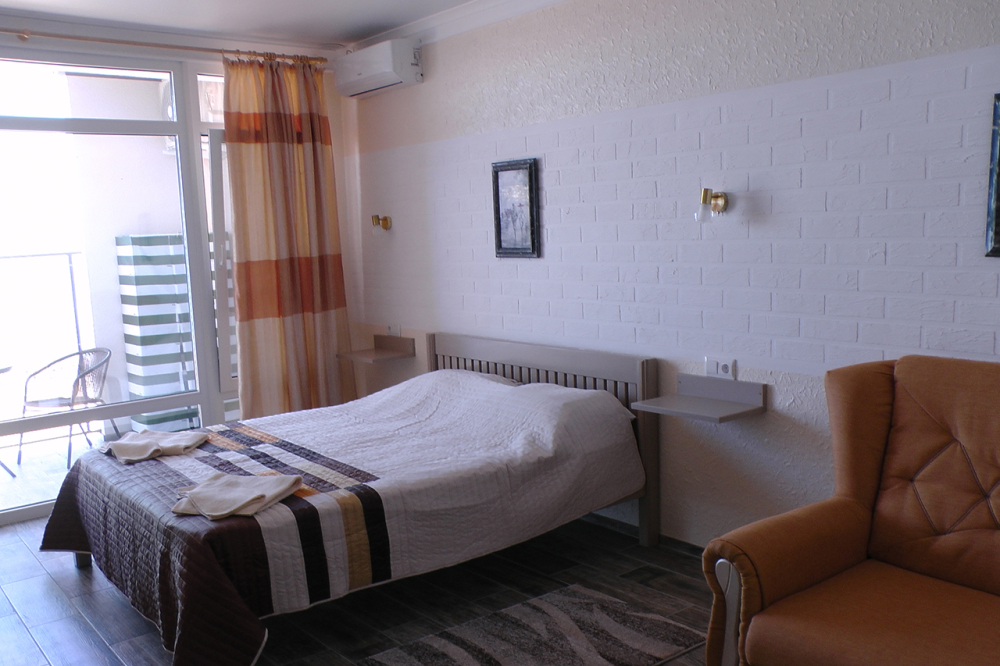 4-этажная современная гостиница «БризПлюс» на 1-й линии от пляжа. Прекрасный вид на море с балкона в каждом номере.