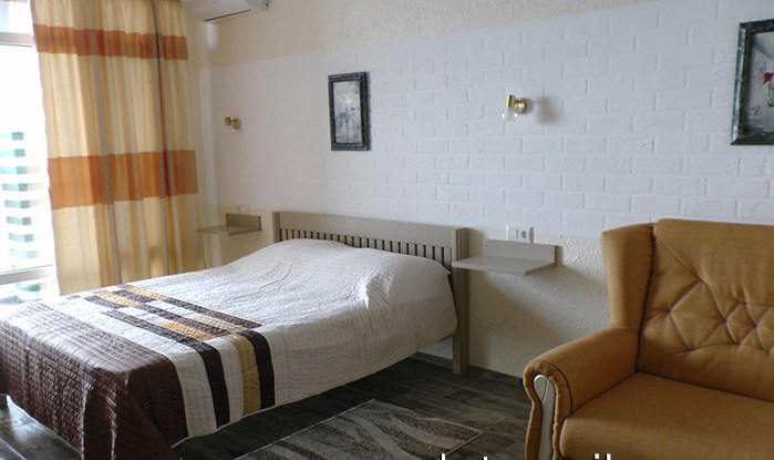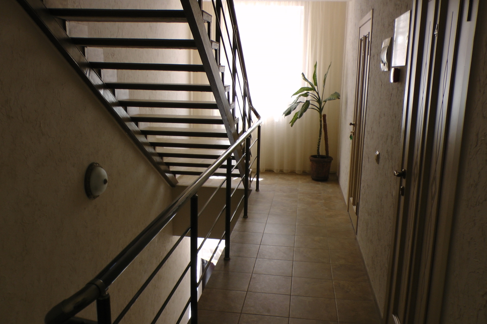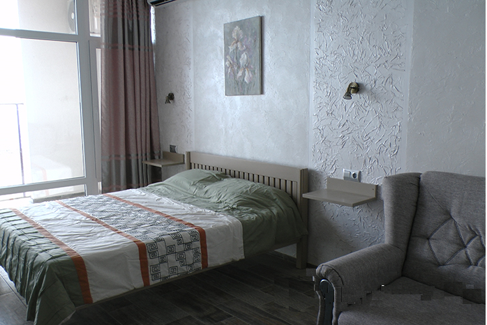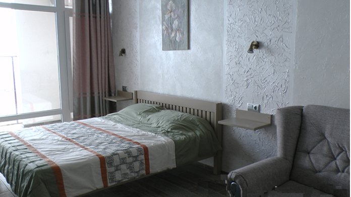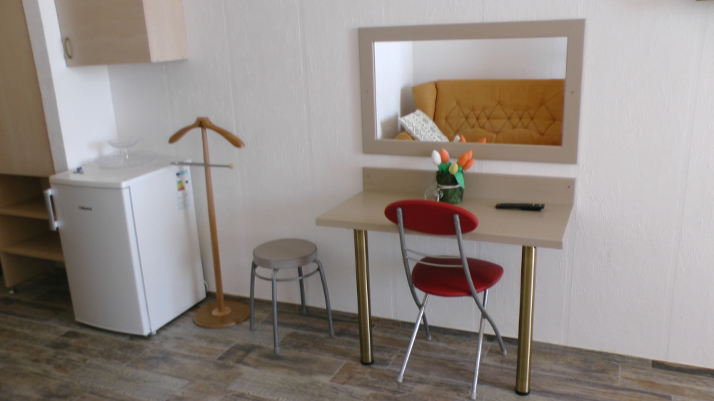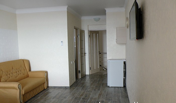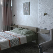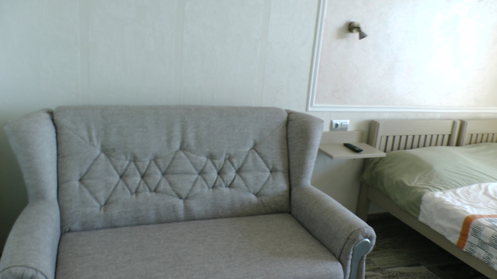 Кровати с ортопедическими матрасами, раскладные диванчики, встроенный шкаф с высокими полками для размещения чемоданов, столик с табуретками, прикроватные полочки - такой стандартный набор мебели расположен в номере. Вход в гостиницу по кодовому замку.