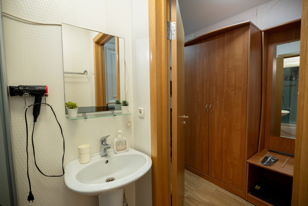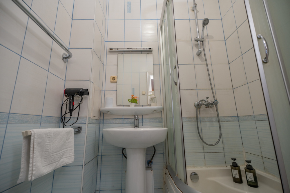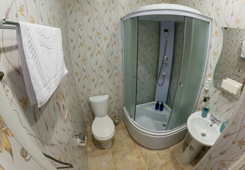 Санузел: чистый и современный санузел с душевой кабиной общий на два номера и находится прямо рядом с Вашей комнатой.