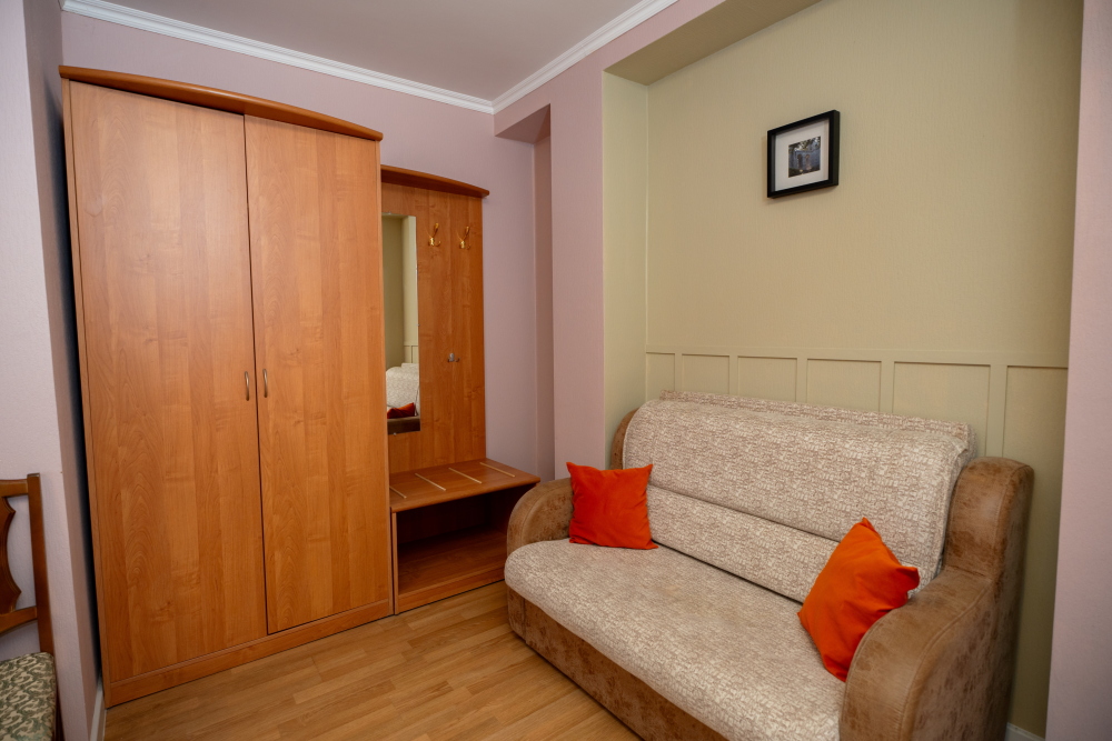 - Для семьи: просторные двухкомнатные номера с диванами и всем необходимым для детей (кроватка, стульчик для кормления, горшок).