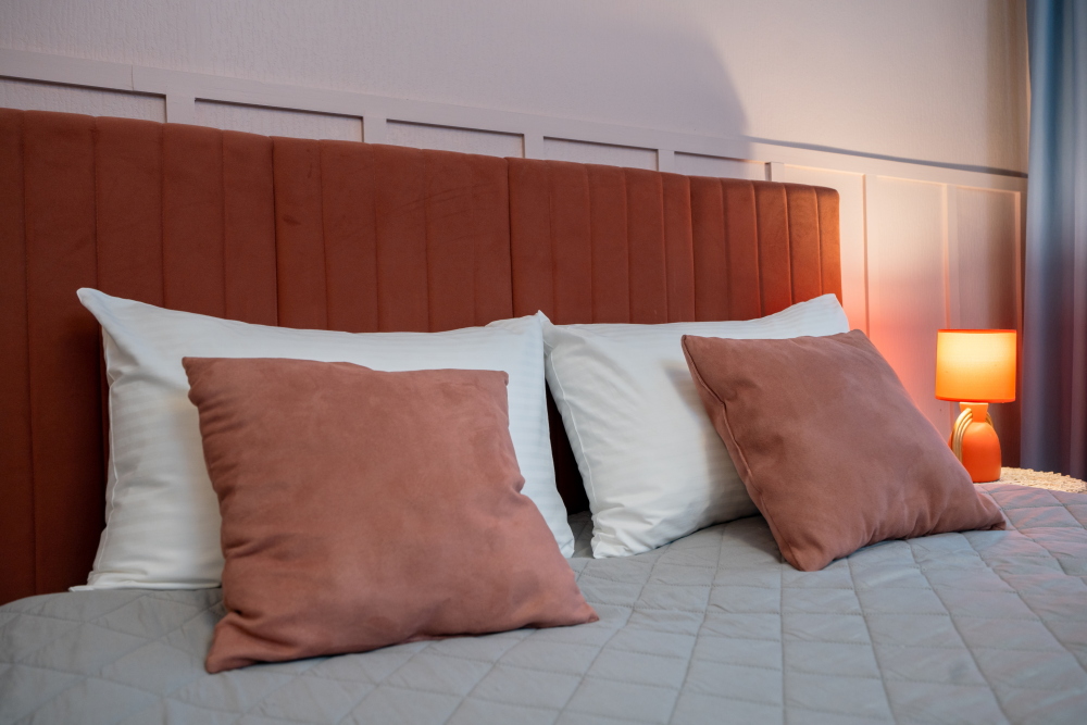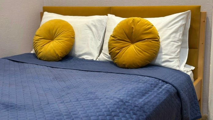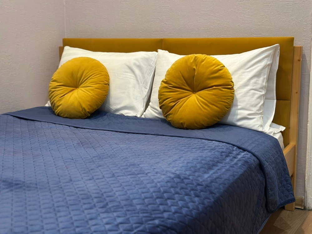 Уютная двуспальная кровать с ортопедическим матрасом.