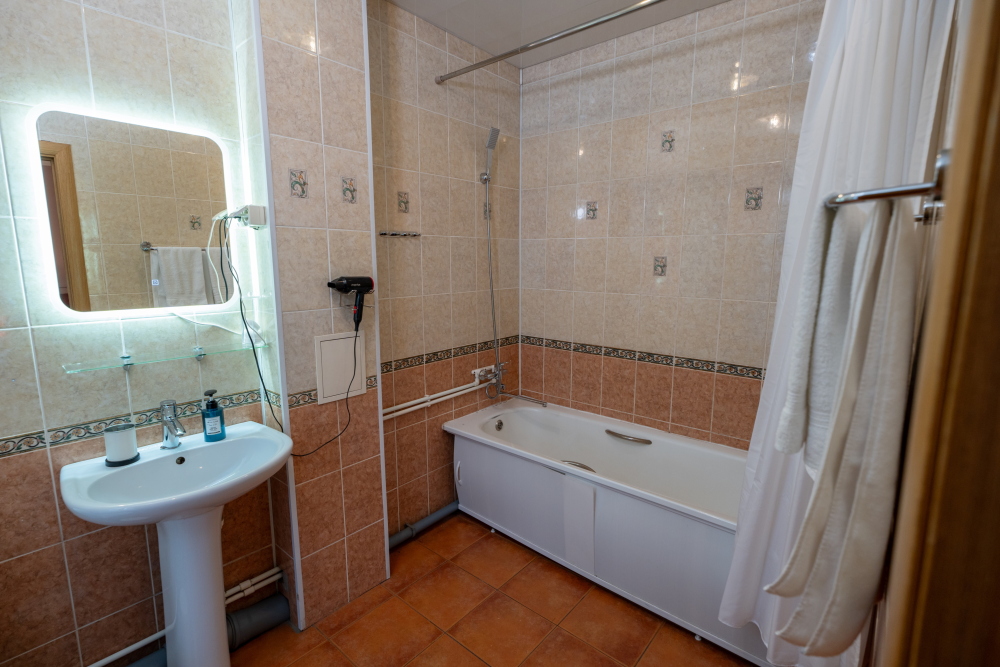 Расслабляющая атмосфера: после насыщенного дня вас ждет полноценный отдых в собственной ванной комнате с ванной.