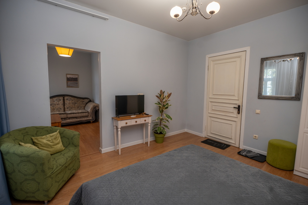 Две отдельные комнаты - с двуспальной кроватью и с удобным диваном.