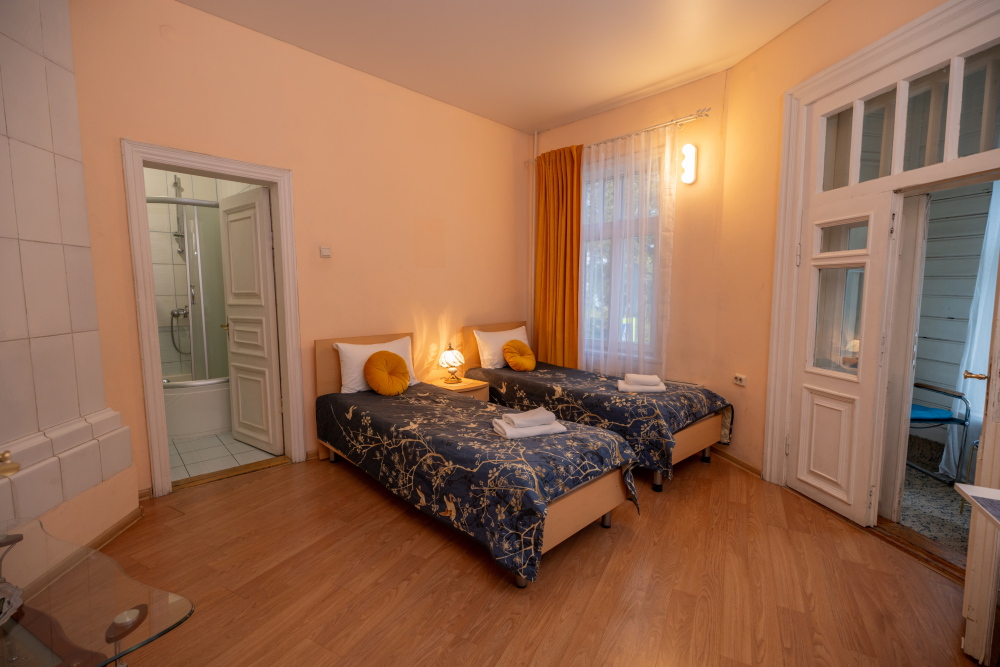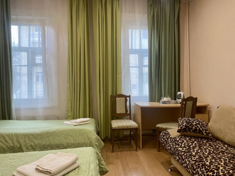 В Вашем распоряжении две односпальные кровати и удобный двуспальный диван.