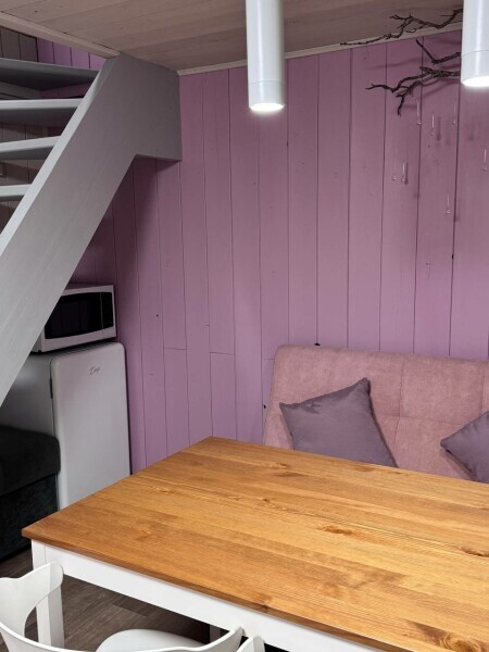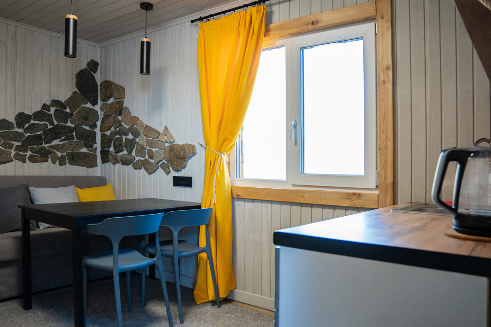 Дом «Лето» вдохновлен летним настроением. При создании дизайна этого дома мы использовали цвета и декор, напоминающие летние мотивы. Особенностью номера является качель, расположенная прямо в номере, которая не оставит никого равнодушным и вернет теплые воспоминания о летних каникулах в детстве.