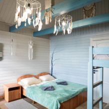 Номер оформлен в цветах деревьев байкальской местности. В отделке используется натуральное дерево с сохранением природной текстуры.