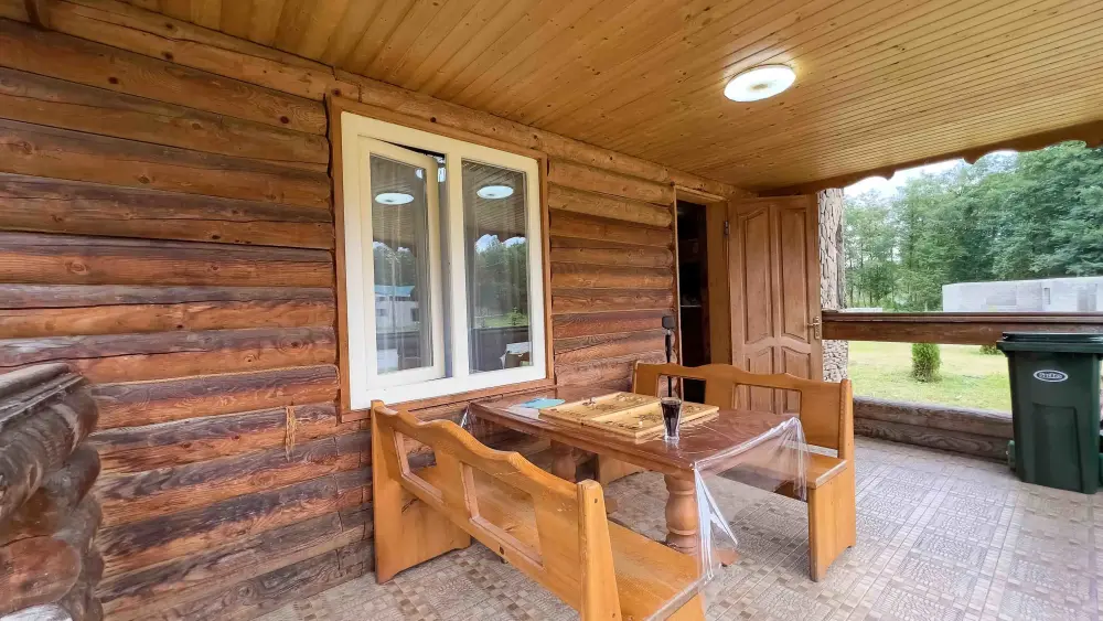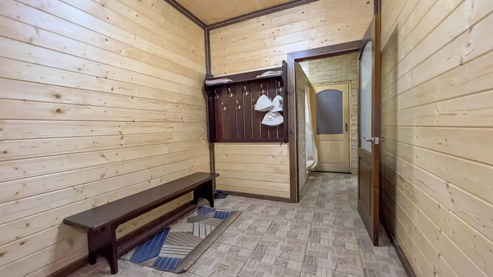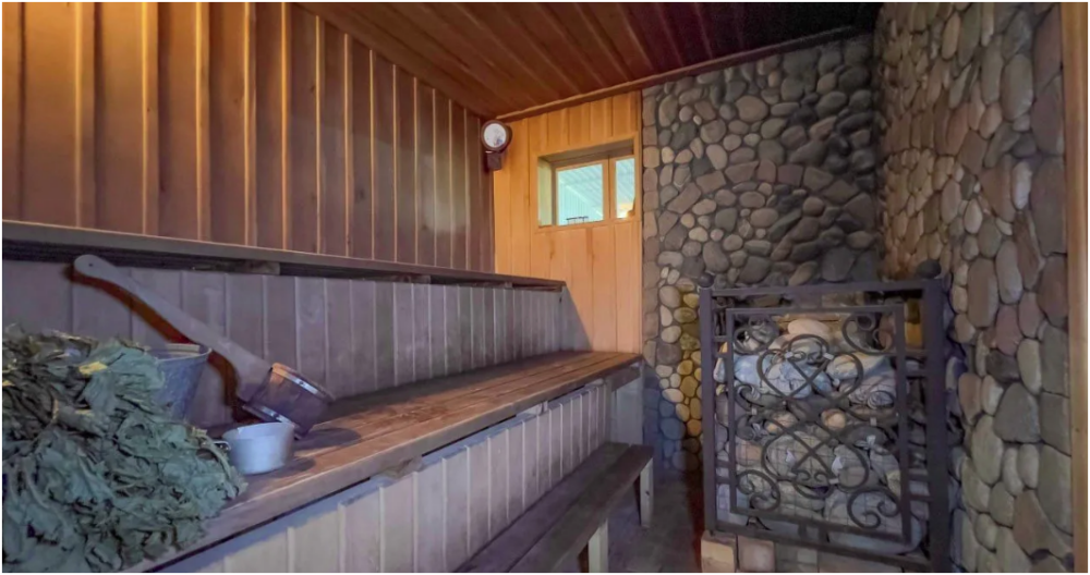 Баня на дровах с бассейном. Из бани выход к озеру, где можно искупаться.