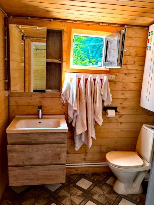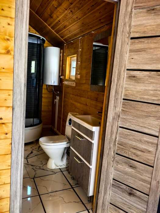 - Санузел: душевая кабина, раковина и унитаз.