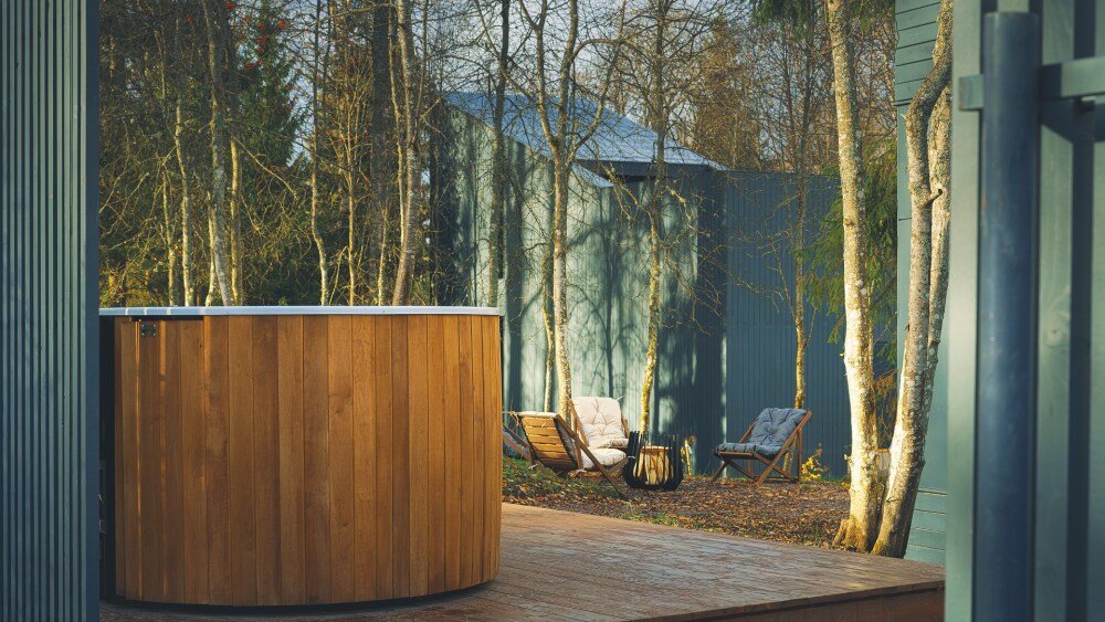 Вилла с сауной, террасой, собственной всепогодной купелью, мангалом и собственной костровой зоной.