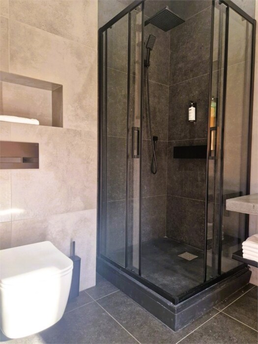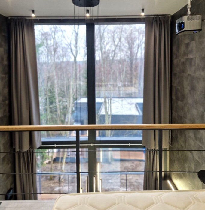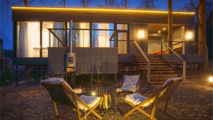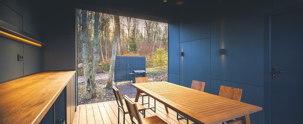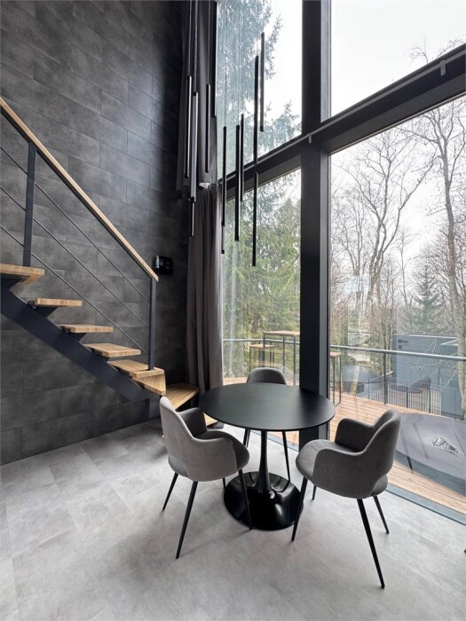 Вилла с панорамными окнами, террасой, собственной всепогодной купелью, мангалом и собственной костровой зоной.