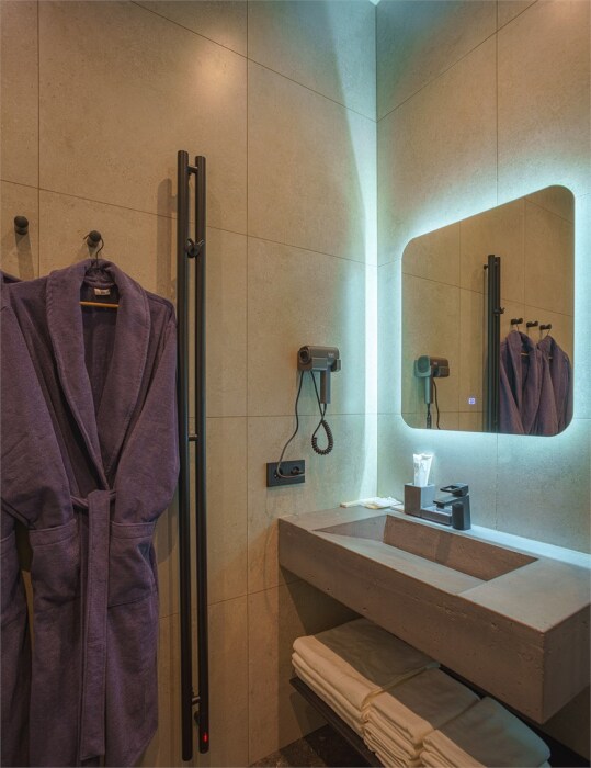 Оснащение виллы: кофейно-чайная станция, оборудованная кухня с обеденной зоной: чайник, капсульная кофемашина, холодильник, плита, посудомоечная машина, микроволновая печь, полный набор посуды для готовки и сервировки, халаты, тапочки, полотенца, фен, набор гигиенических и туалетных принадлежностей (зубной набор, гель для душа, шампунь, шапочка для душа, гигиенический набор).
