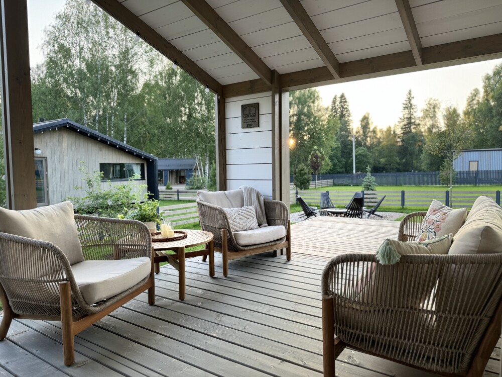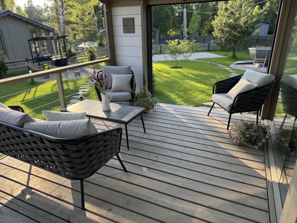 Территория домов отличается единым стилем и высоким качеством исполнения: от архитектуры домов до ландшафтного дизайна. Каждый дом обустроен с продуманными деталями, создавая неповторимую атмосферу уюта и стиля.