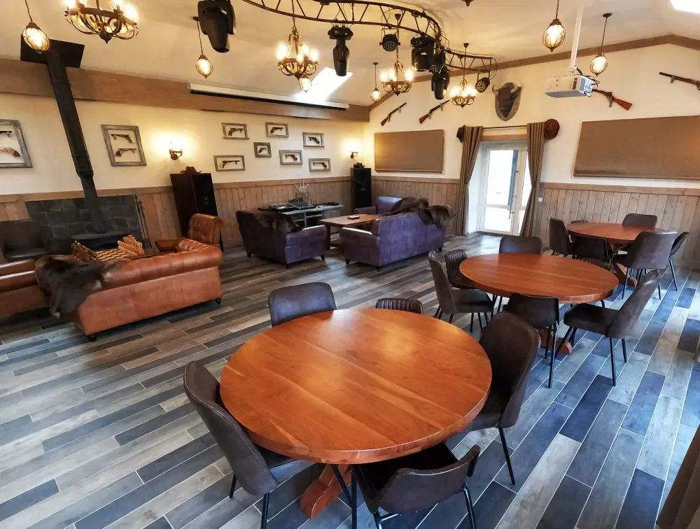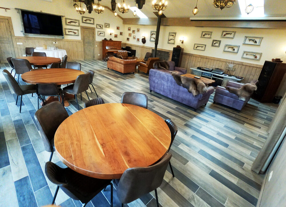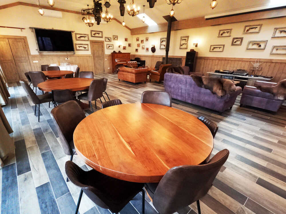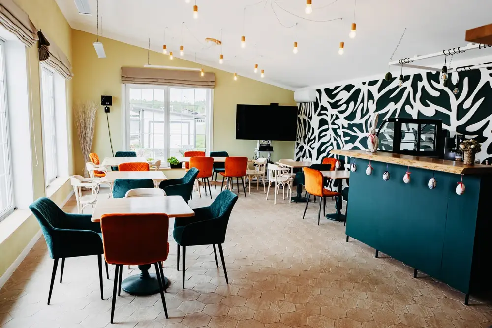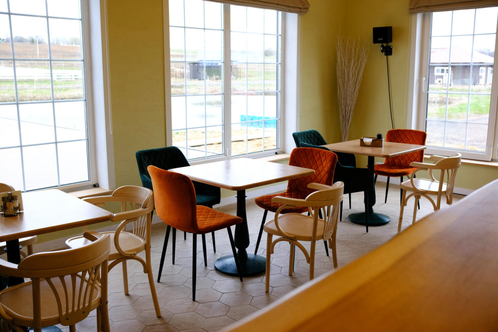 На территории клуба работает ресторан с атмосферой настоящего американского ранчо — с блюдами, приготовленными из натуральных продуктов, и уютным интерьером с камином и панорамными окнами, погружающим в дух приключений. Для лёгких перекусов и душевных встреч подойдёт уютное кафе с домашней кухней и ароматным кофе.