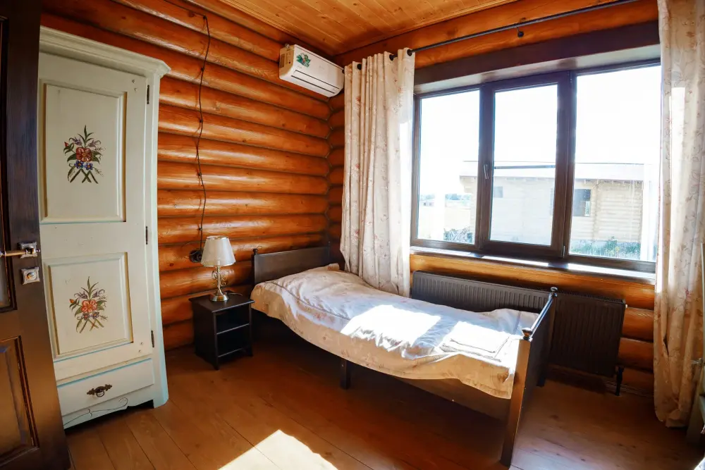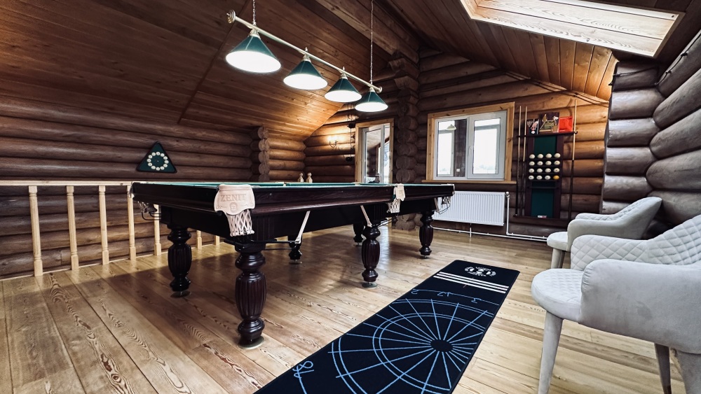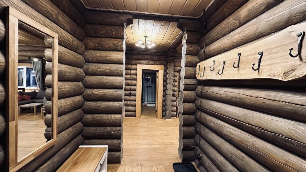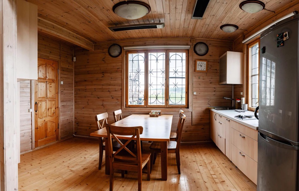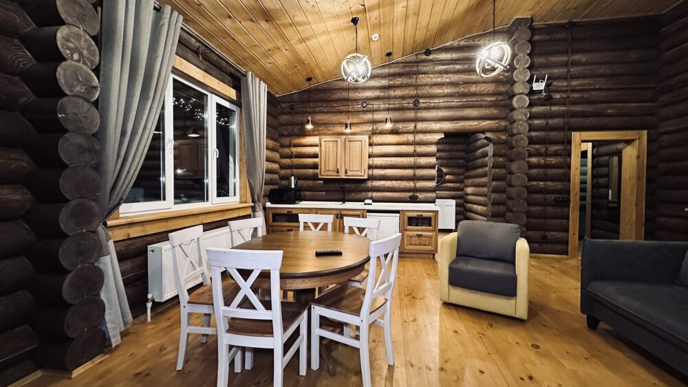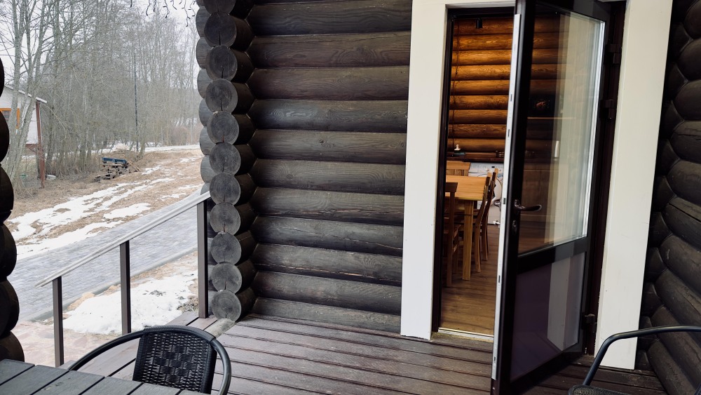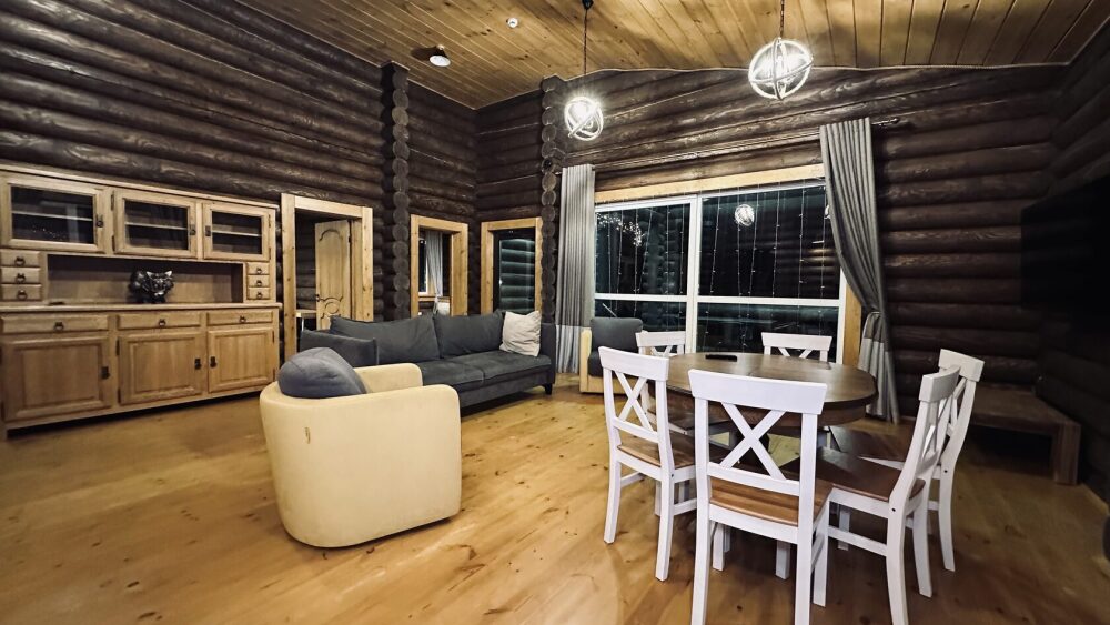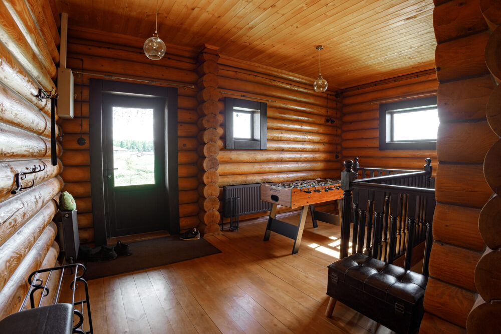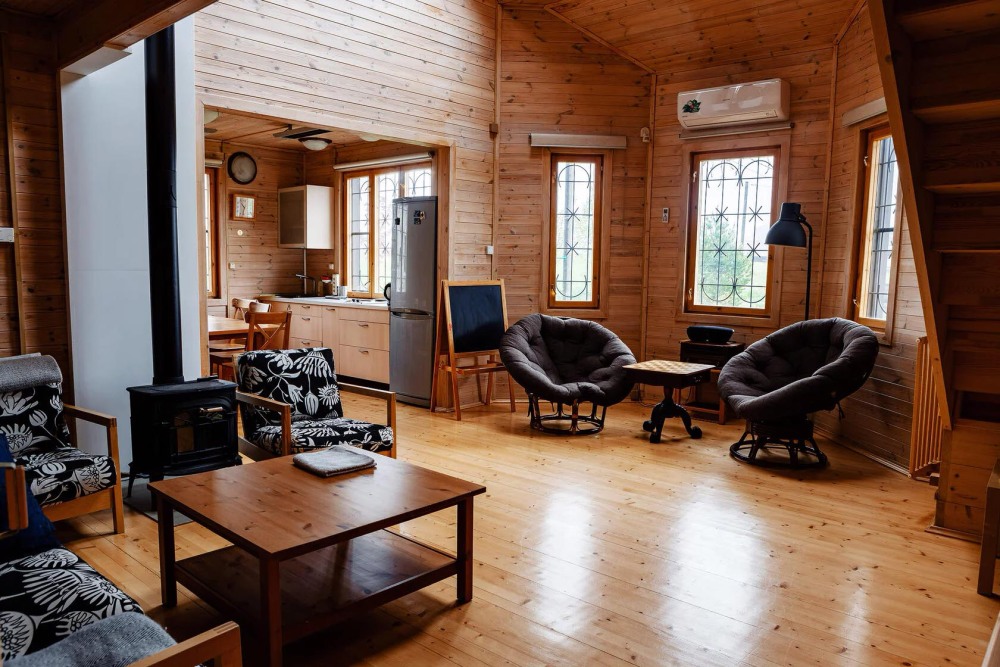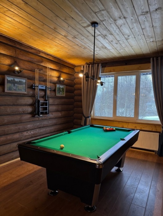 Просторный дом из сруба площадью 145 м² с камином — это идеальное место для семейного отдыха или уикенда с друзьями. Натуральное дерево создаёт особую атмосферу тепла и уюта, а камин в гостиной наполняет вечера загородным шармом. В доме две спальни: одна с двуспальной кроватью, другая — с двумя односпальными, а при необходимости в гостиной могут с комфортом разместиться ещё 2 гостя.