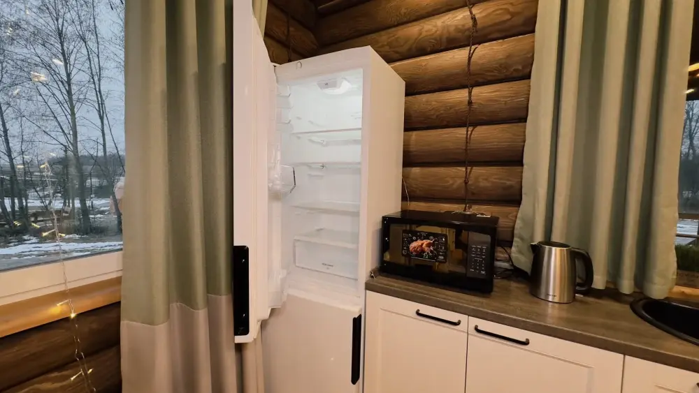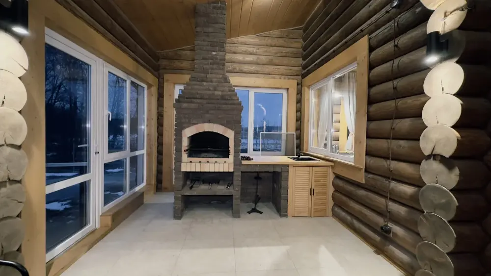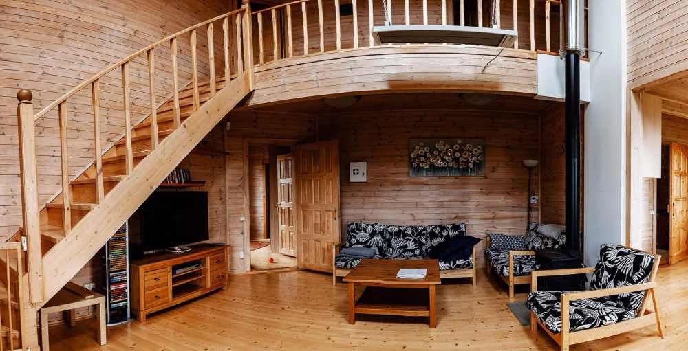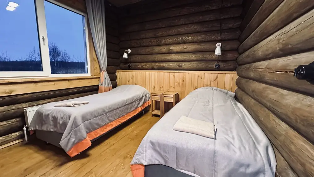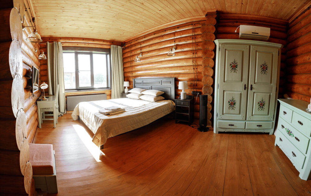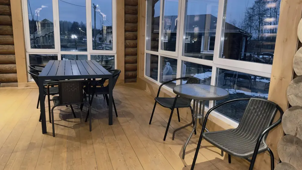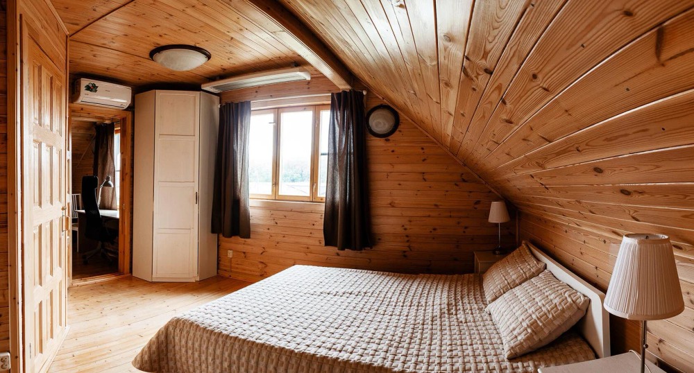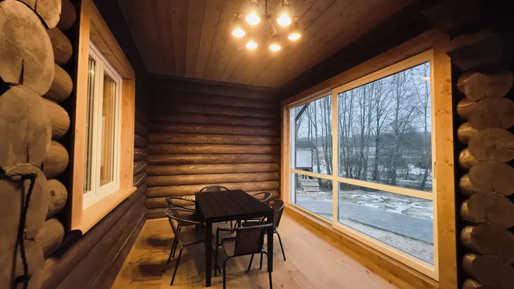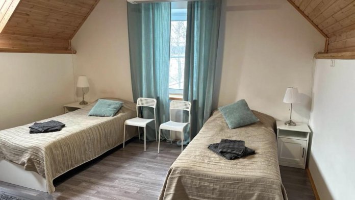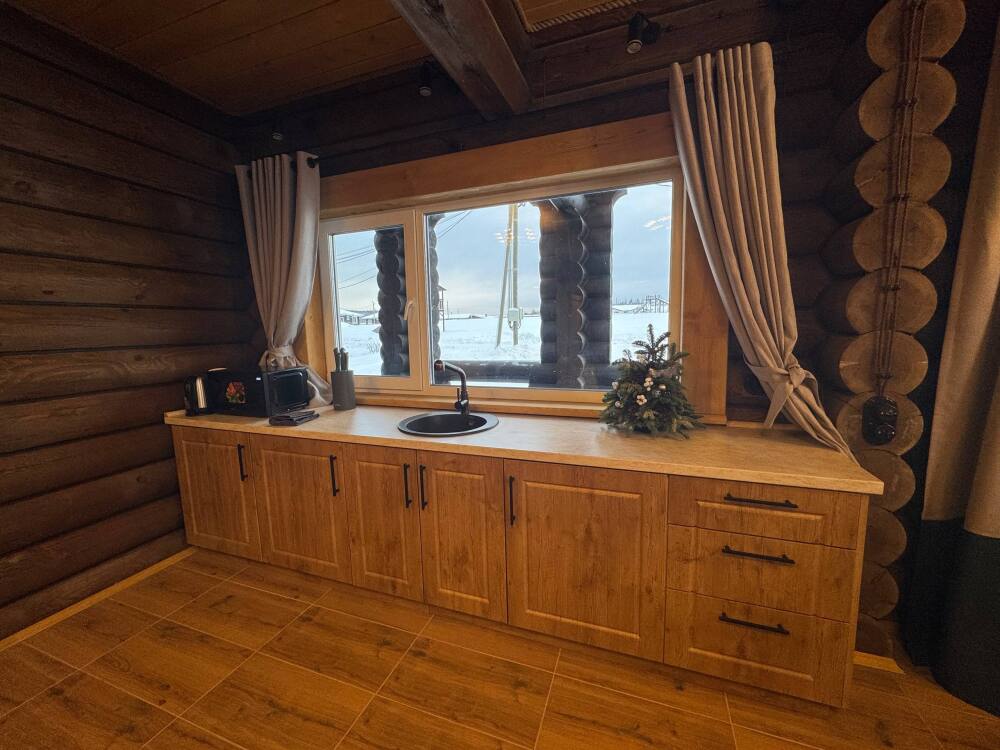 Просторный дом из сруба площадью 145 м² с камином — это идеальное место для семейного отдыха или уикенда с друзьями. Натуральное дерево создаёт особую атмосферу тепла и уюта, а камин в гостиной наполняет вечера загородным шармом. В доме две спальни: одна с двуспальной кроватью, другая — с двумя односпальными, а при необходимости в гостиной могут с комфортом разместиться ещё 2 гостя.
