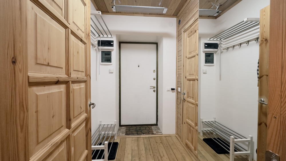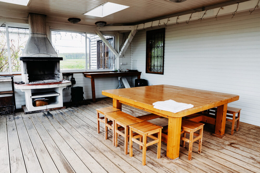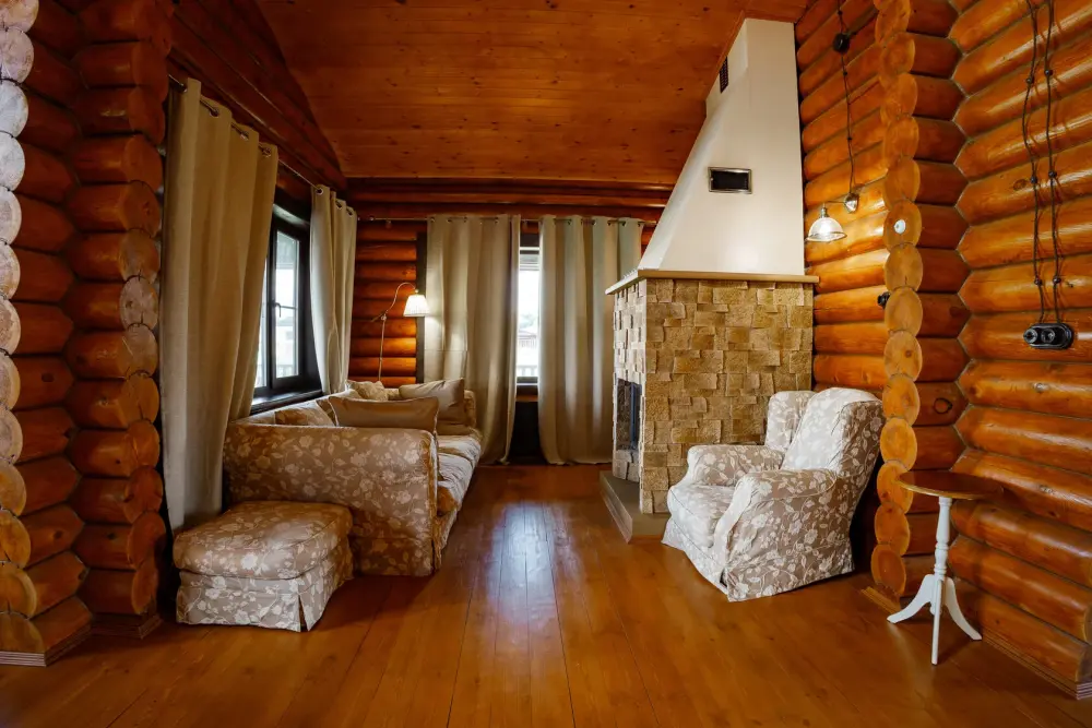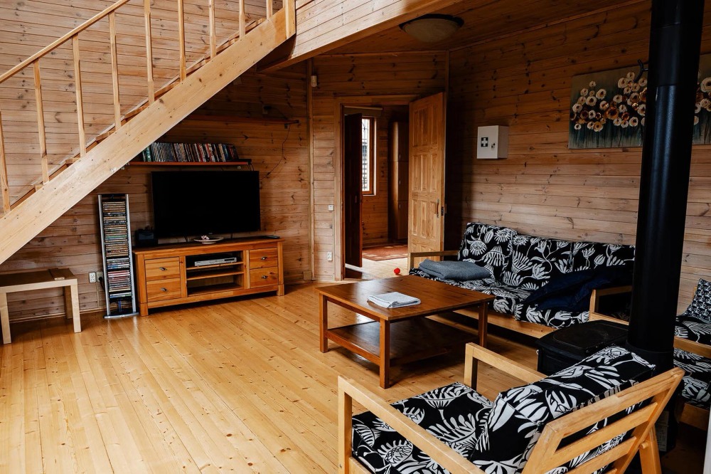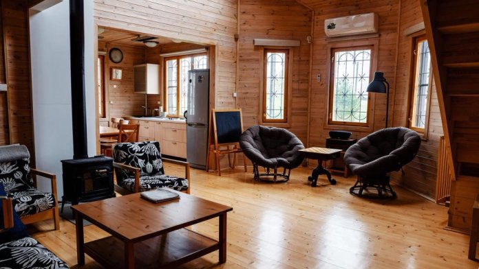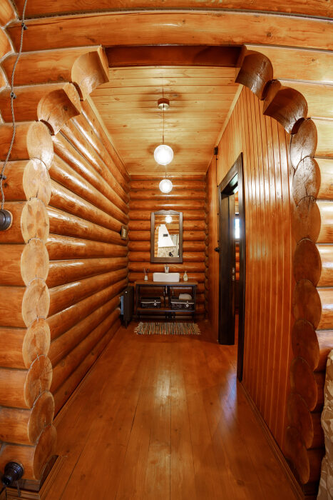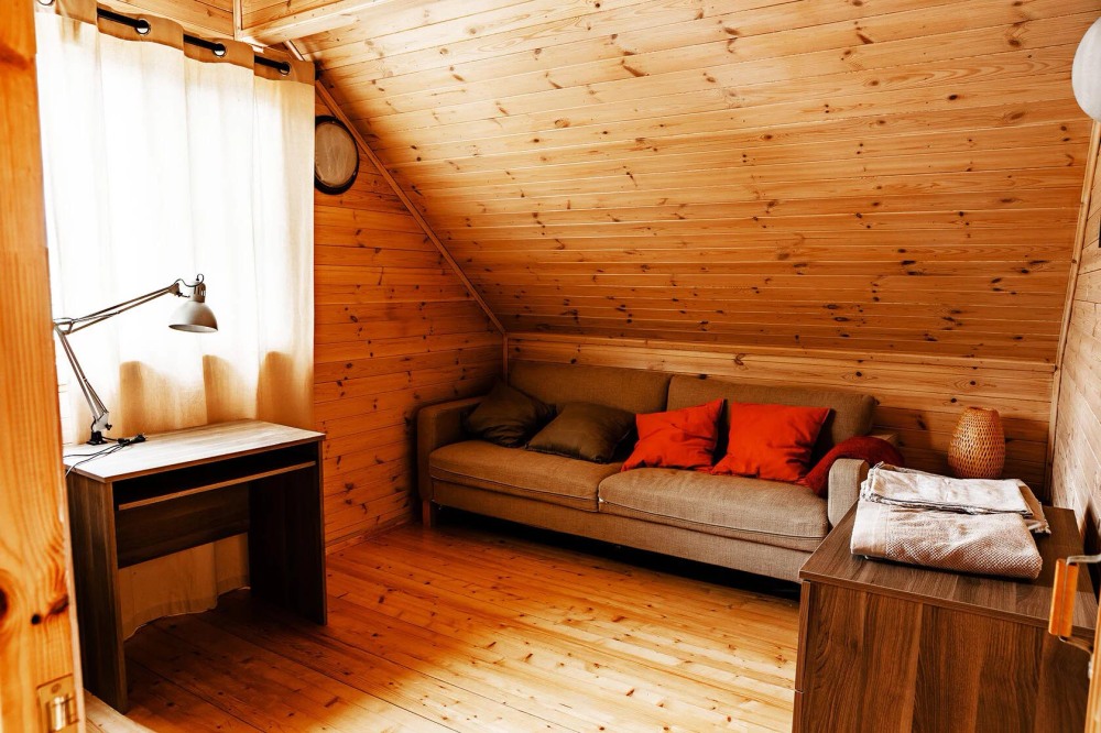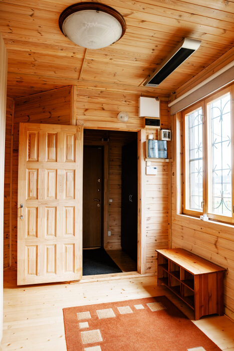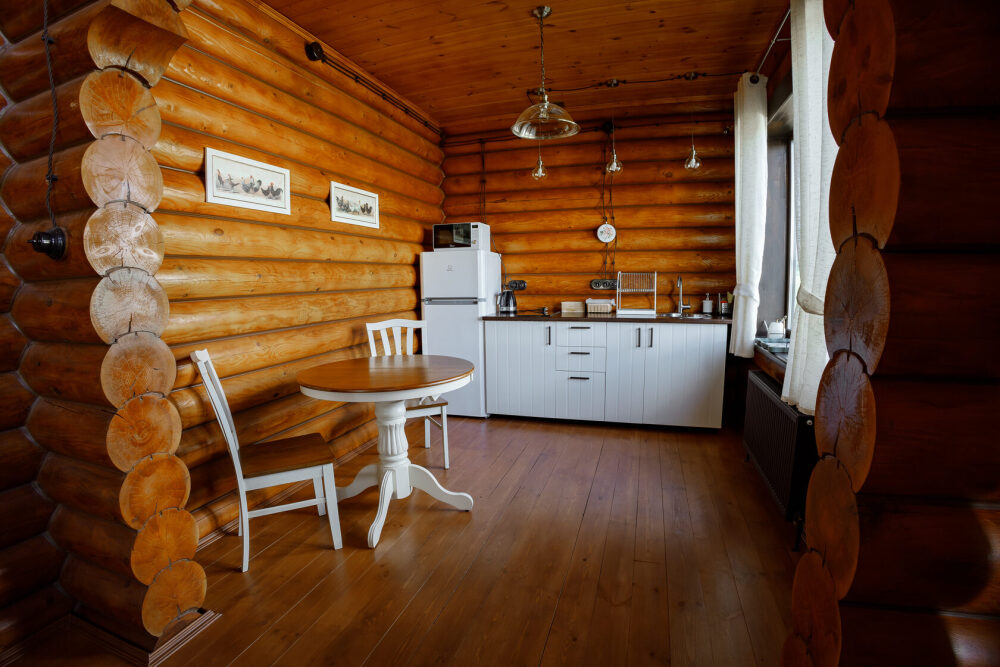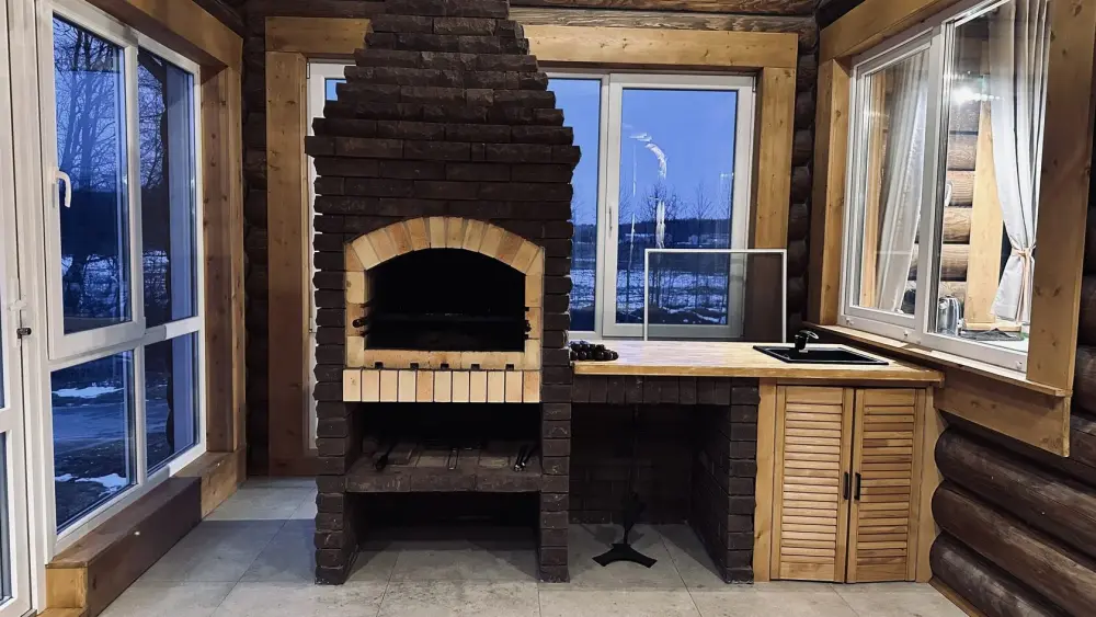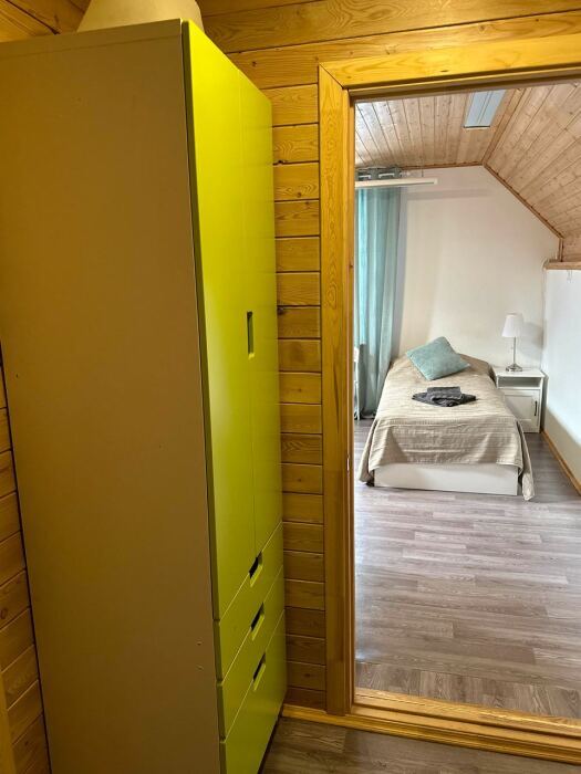 Просторный дом из сруба площадью 145 м² с камином — это идеальное место для семейного отдыха или уикенда с друзьями. Натуральное дерево создаёт особую атмосферу тепла и уюта, а камин в гостиной наполняет вечера загородным шармом. В доме две спальни: одна с двуспальной кроватью, другая — с двумя односпальными, а при необходимости в гостиной могут с комфортом разместиться ещё 2 гостя.