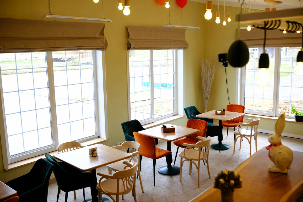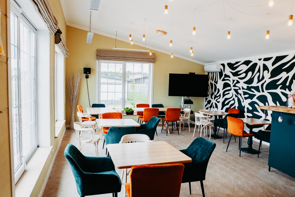 Для маленьких гостей есть детский уголок с играми, а для любителей весёлого досуга — караоке с мощной акустикой и большим экраном.