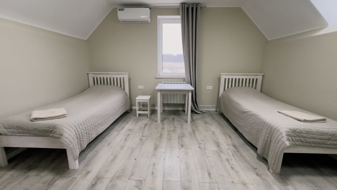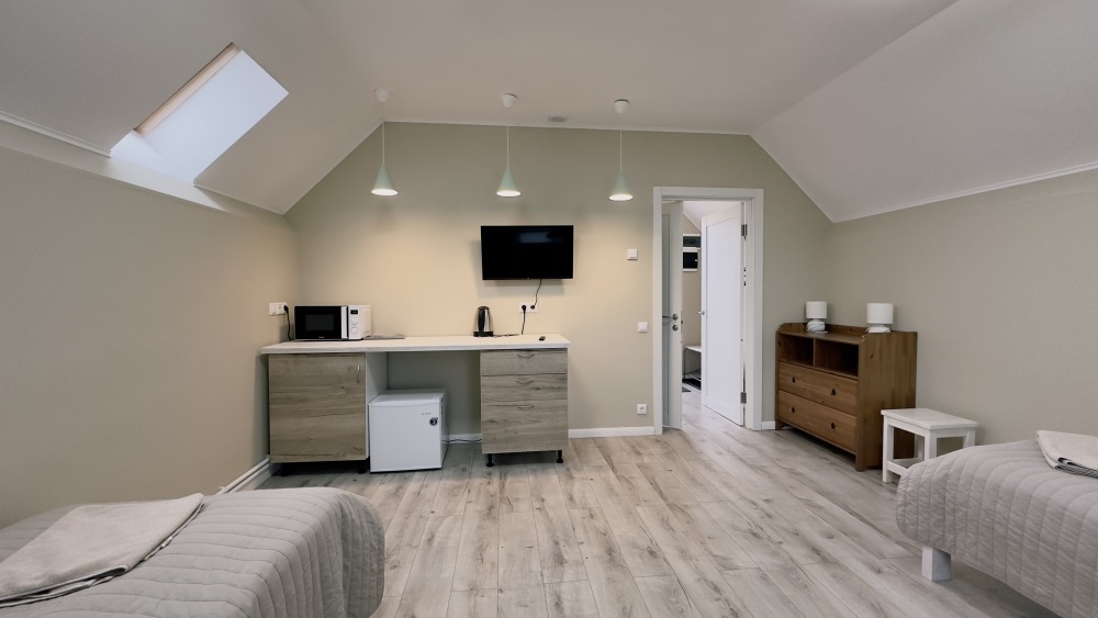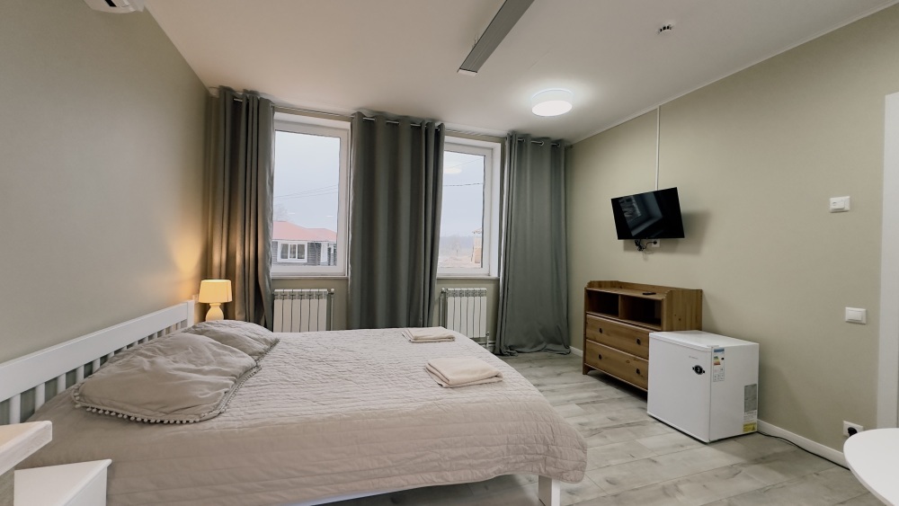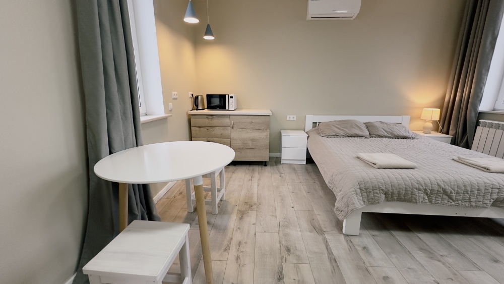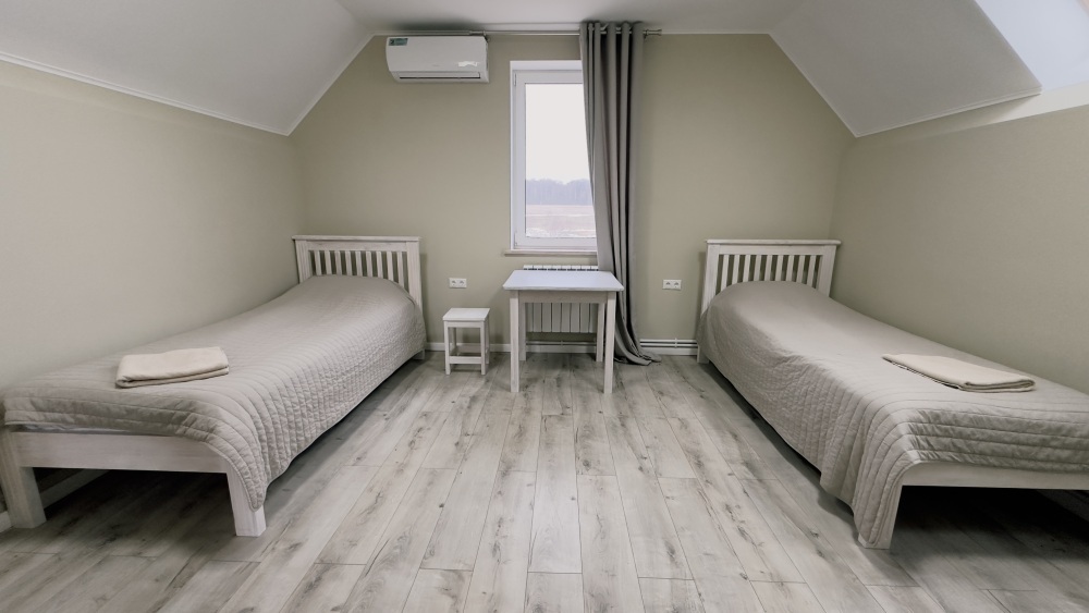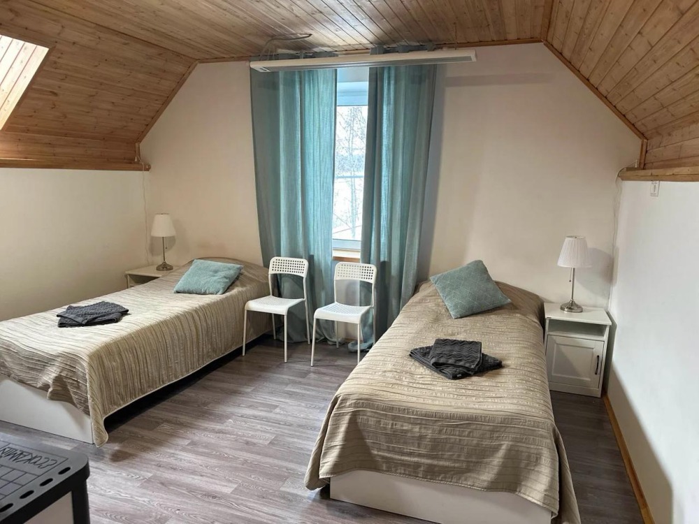 Уютные апартаменты 30 м² с отдельным входом на втором этаже — отличный вариант для двух гостей. Светлая комната с двумя односпальными кроватями, кухня с техникой и посудой, санузел с душевой кабиной. В наличии TV, Wi-Fi, стиральная машина, постельное бельё и полотенца. Парковка рядом с домом.