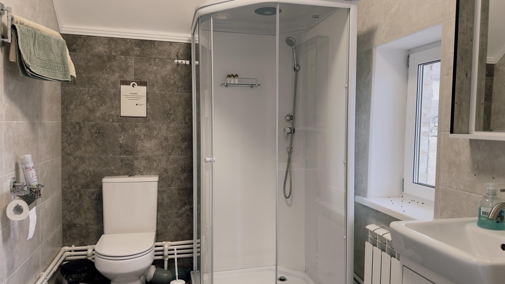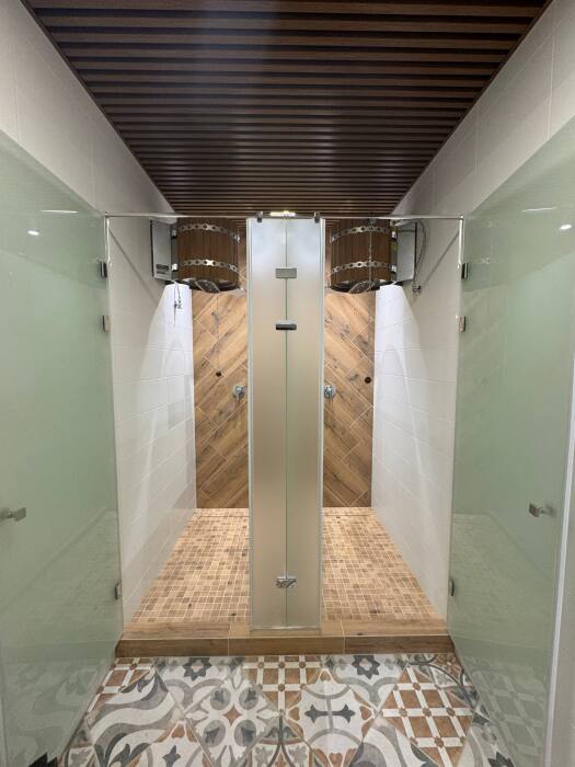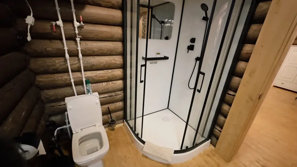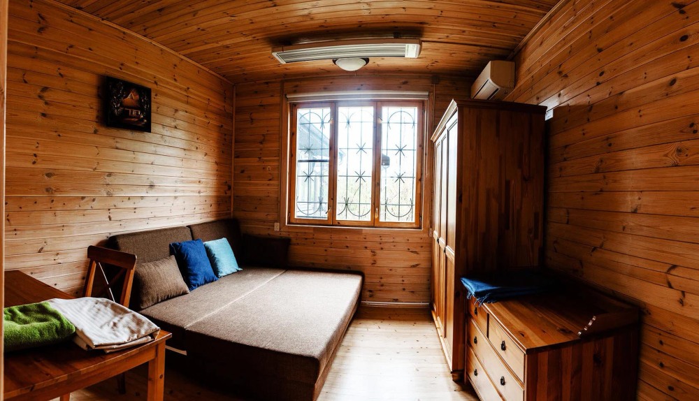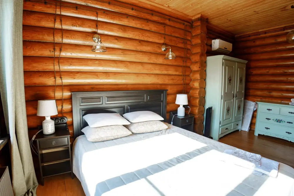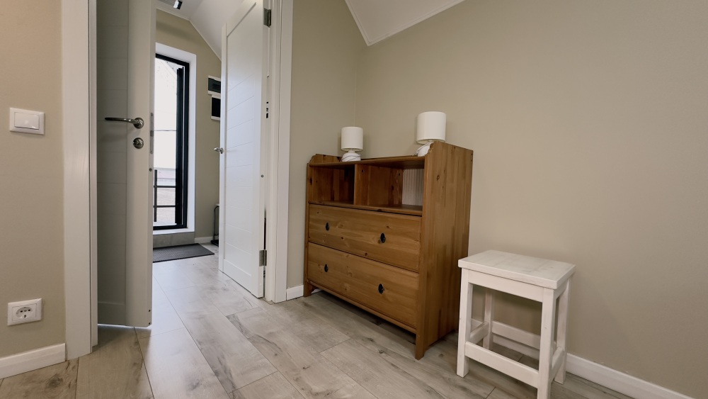Уютный дом из сруба площадью 105 м² с отдельной террасой идеально подойдёт для небольшой семьи или компании друзей. Натуральное дерево создаёт атмосферу тепла и спокойствия, а продуманная планировка обеспечивает комфорт каждому гостю. В доме две изолированные спальни с двуспальными кроватями — каждая оборудована кондиционером и собственным санузлом с душевой кабиной. В гостиной расположен раскладной двуспальный диван, что делает размещение ещё более удобным.