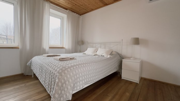 Уютные апартаменты 30 м² с отдельным входом — отличный вариант для романтического отдыха или спокойного уикенда. Светлая комната с двуспальной кроватью, кухня с техникой, санузел с душем и биде. Печь-камин создаёт особый уют. В наличии TV, Wi-Fi, стиральная машина, посуда, постельное бельё. Парковка рядом. Подходят для 2 гостей.