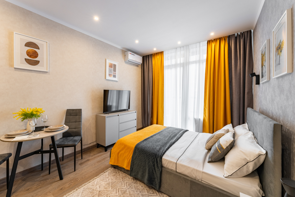 Устали от городской суеты? Представьте: тихий вечер, закатное солнце заливает уютную лоджию Вашей квартиры-студии, оформленной в спокойных серо-горчичных тонах, в новом ЖК «Beside».