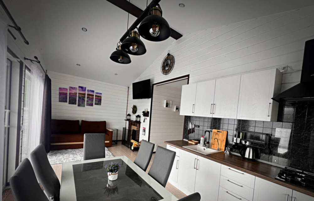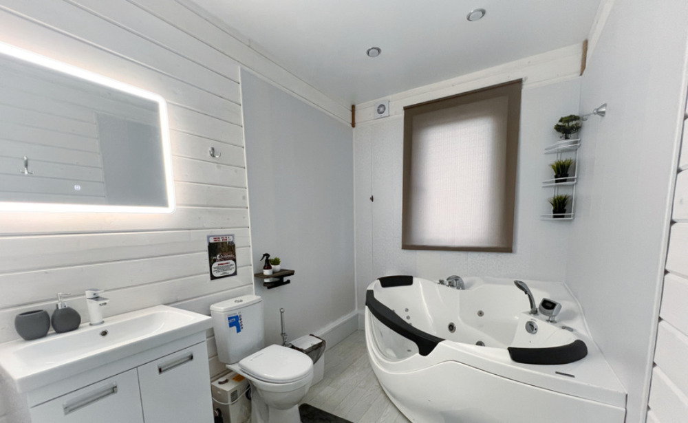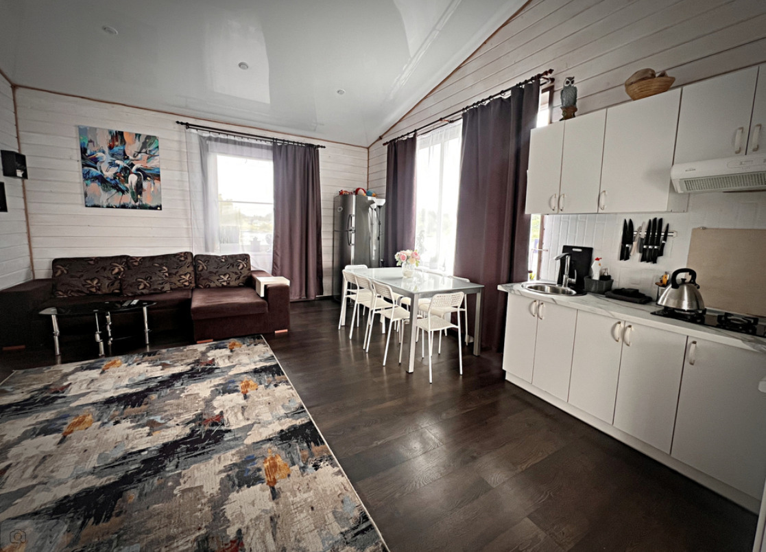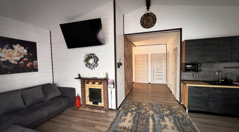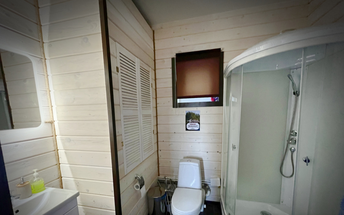 В доме есть всё необходимое: Система теплых полов по всему дому; Кухня с посудомоечной машиной и микроволновой печью; Современный душ и туалет с септиком; Постельное белье, полотенца, тапочки; Высокоскоростной Wi-Fi и Smart TV.