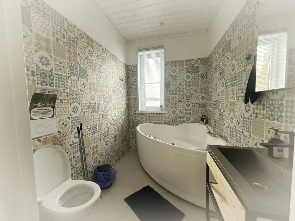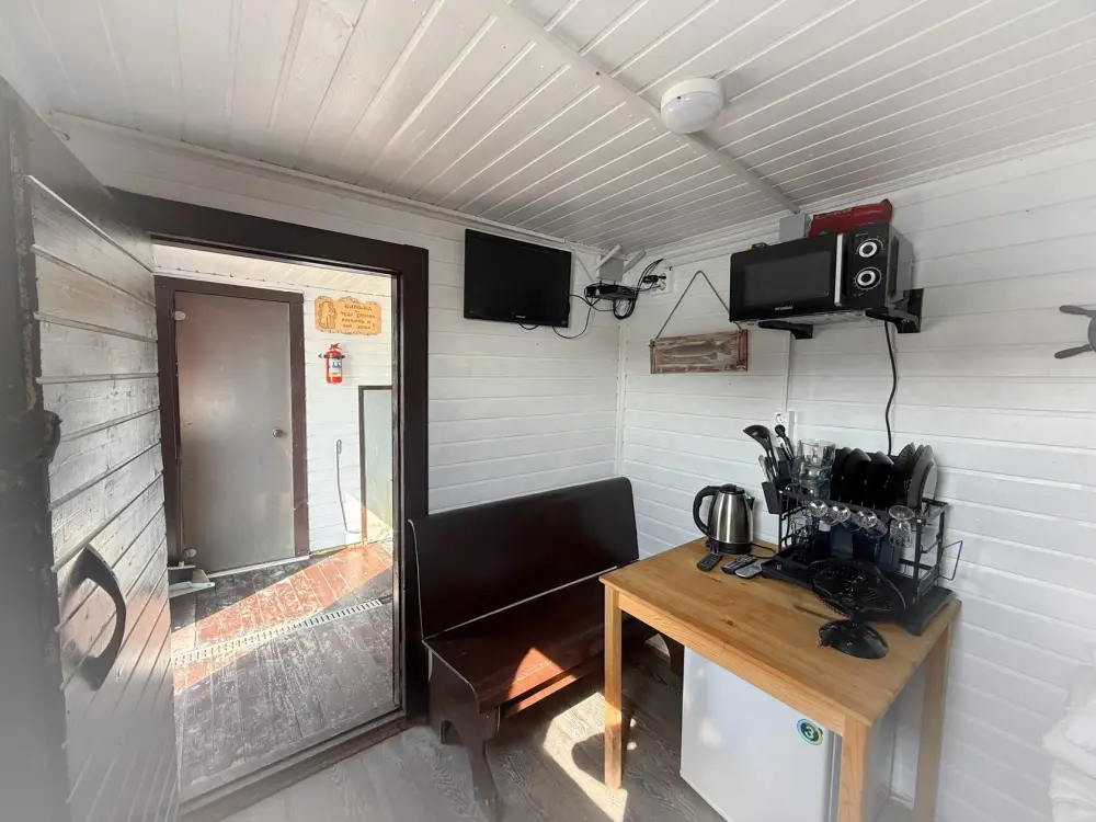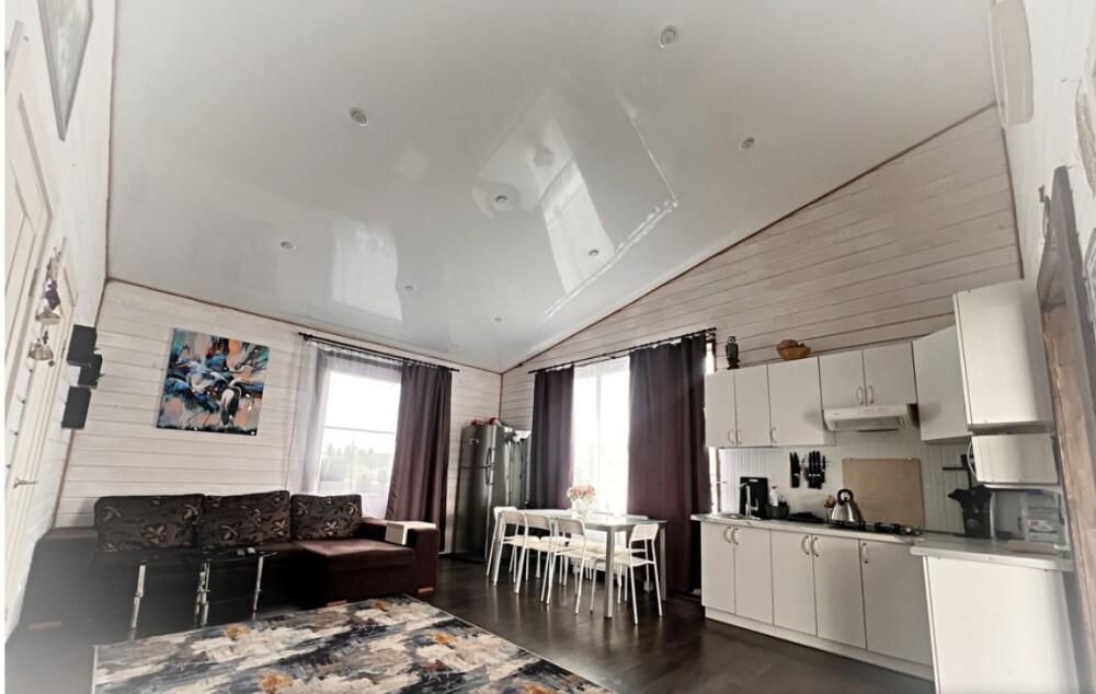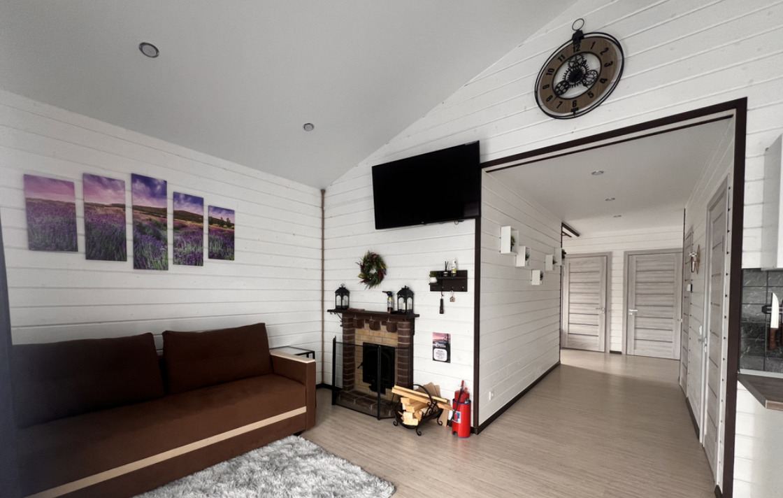 В доме есть всё необходимое: Система теплых полов по всему дому; Кухня с посудомоечной машиной и микроволновой печью; Современный душ и туалет с септиком; Постельное белье, полотенца, тапочки; Высокоскоростной Wi-Fi и Smart TV.