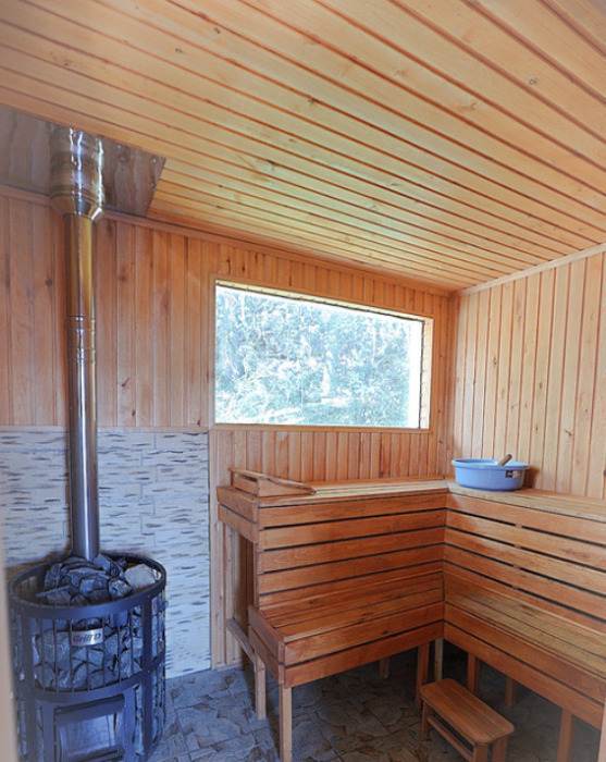 Для максимального релакса можно расслабиться в подогреваемой купели наполненной ароматными травами и фруктами за дополнительную плату.