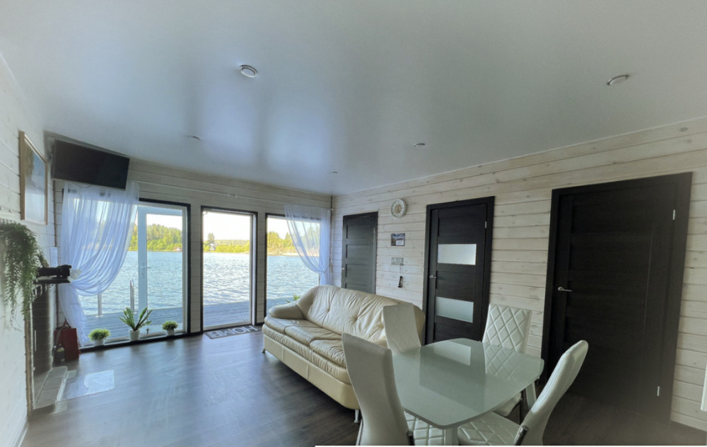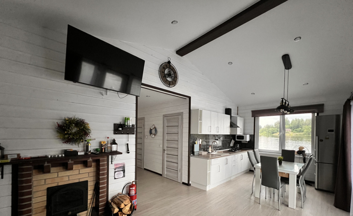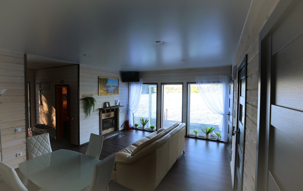 Услуги: джакузи, русская баня, камин, спутниковый интернет, Smart TV, мангальная зона на берегу. Весельная лодка у дома включена.