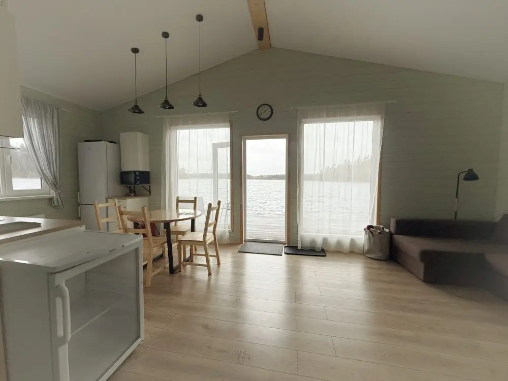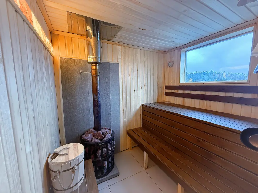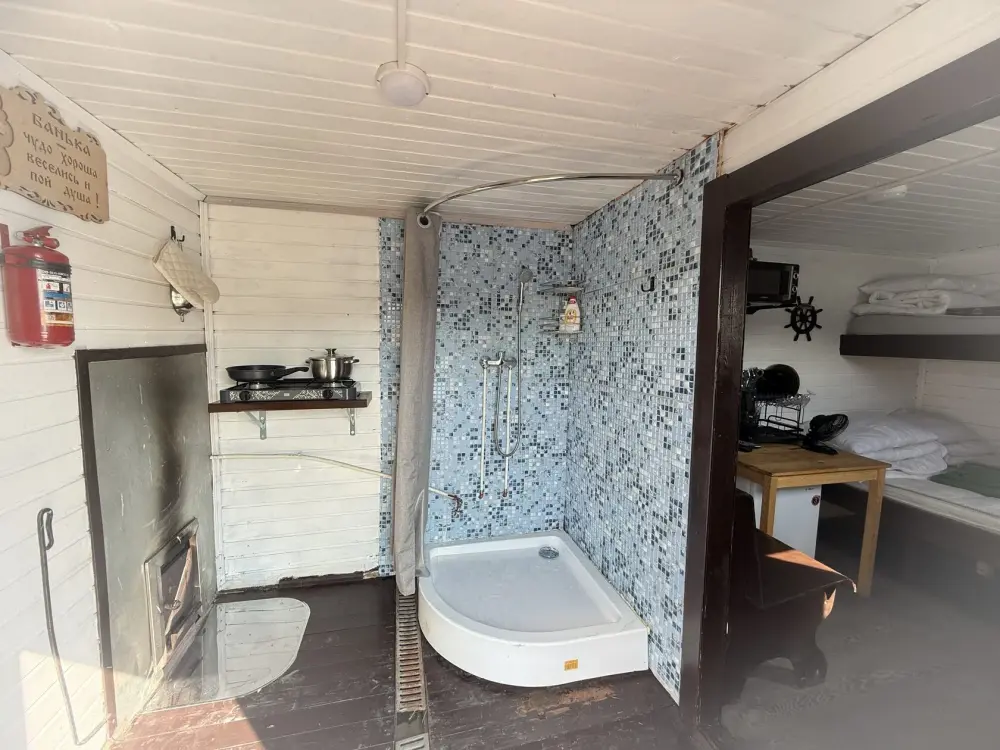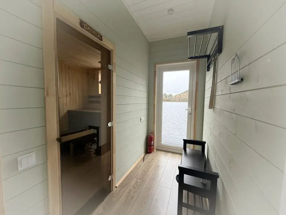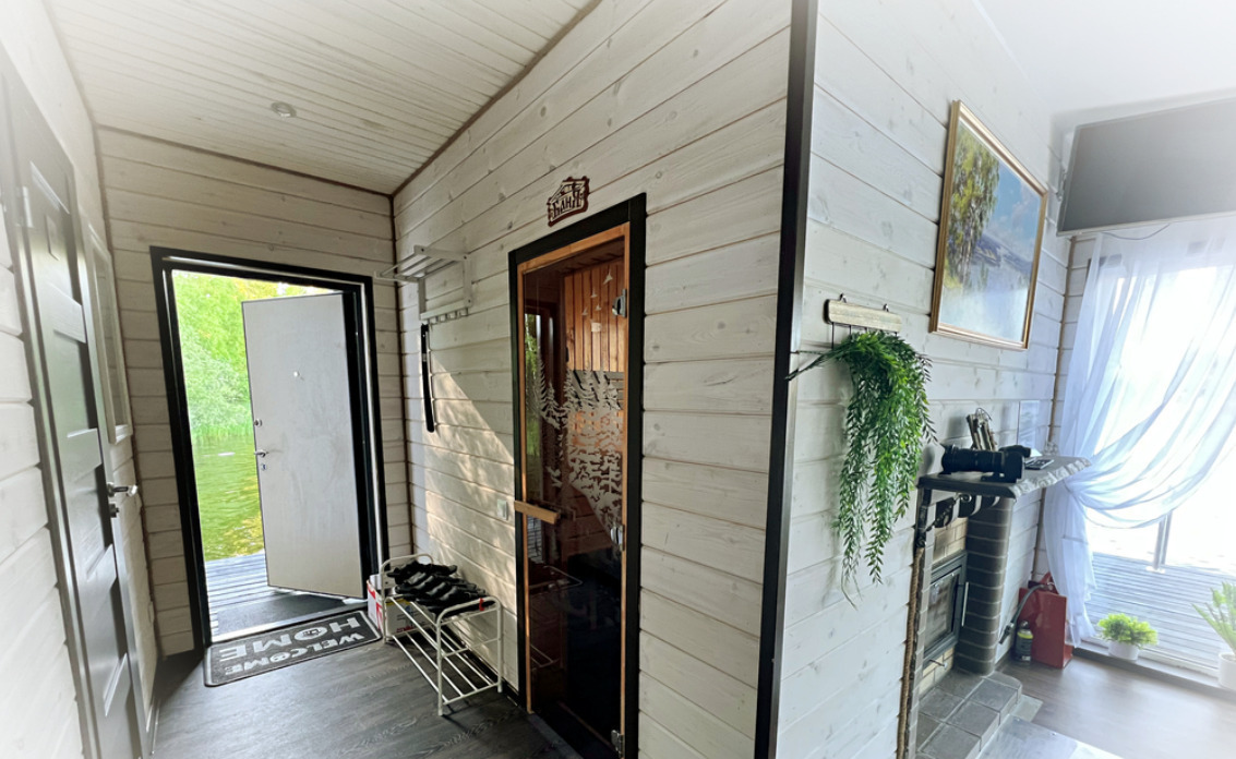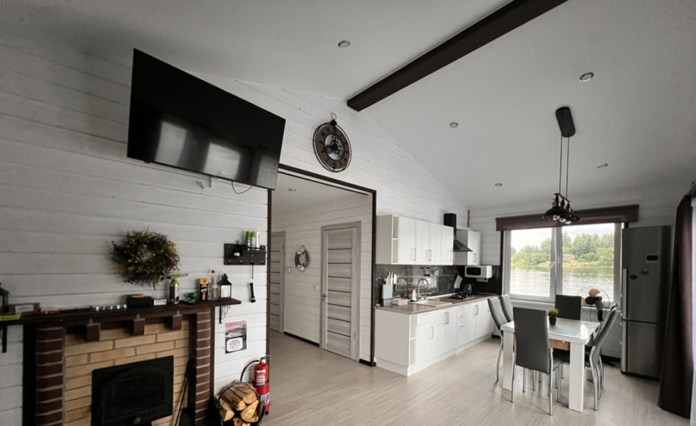 Просторная баня на дровах; Джакузи с аэромассажем для абсолютного расслабления; Камин на дровах; Кухня с фильтрацией воды и микроволновкой; Система тёплых полов по всему дому; Просторная терраса с мебелью и лестницей, ведущей прямо к воде; Мангальная зона с шампурами и решётками. Дрова предоставляются в необходимом количестве для бани.