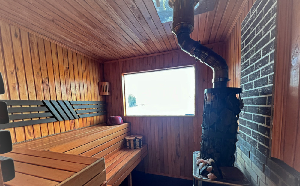 Дополнительные удобства: Русская парная на дровах с панно из гималайской соли; Джакузи с гидромассажем и подсветкой; Мангальная зона для барбекю; Камин на дровах для уюта и тепла.