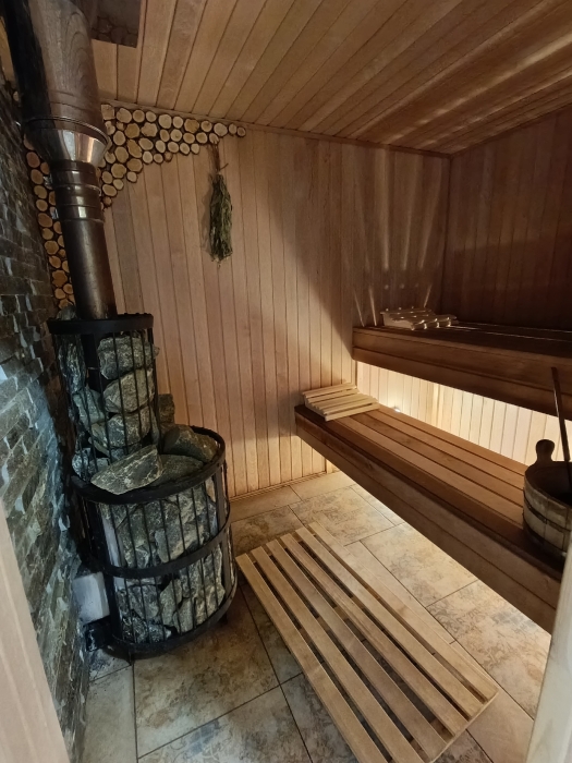 - баня на дровах для любителей русской банной культуры, веники дубовые и берёзовые;