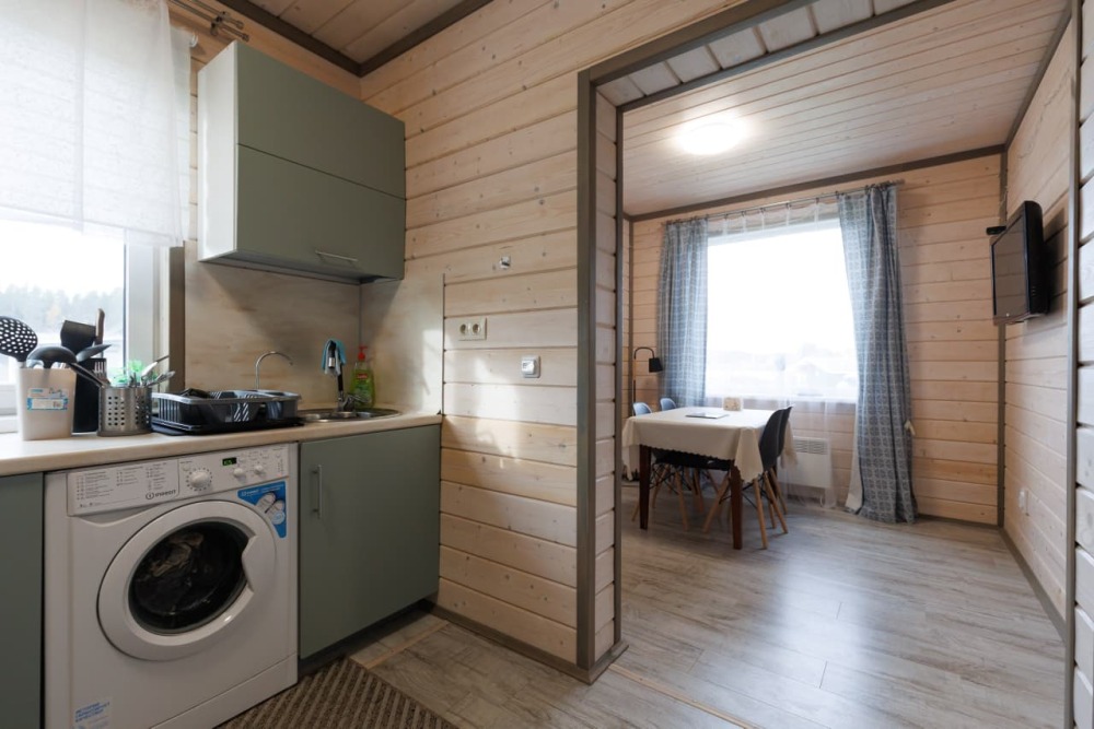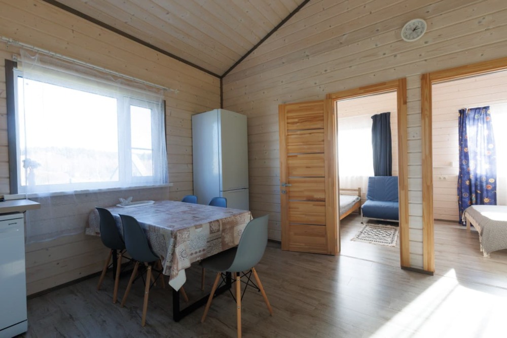 В летний период в домике могут разместиться до 4 человек. Просторная кухня-гостиная, где приятно собраться в теплом семейном кругу. Сауна на дровах. Совмещенный санузел.