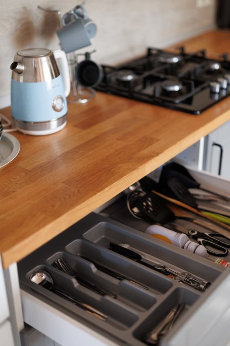 В наличии есть вся необходимая посуда - тарелки, стаканы, бокалы, фужеры, сковородки, кастрюли, столовые приборы.
