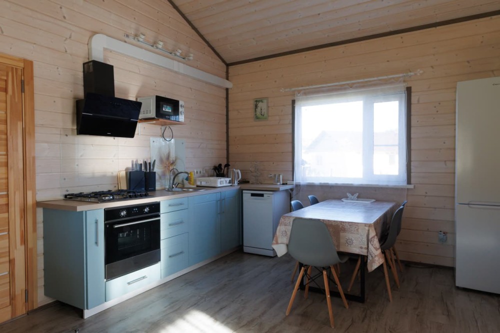 - в каждом домике уже есть вся необходимая посуда и бытовая техника (вплоть до посудомоечной машинки - мы ценим ваше время);